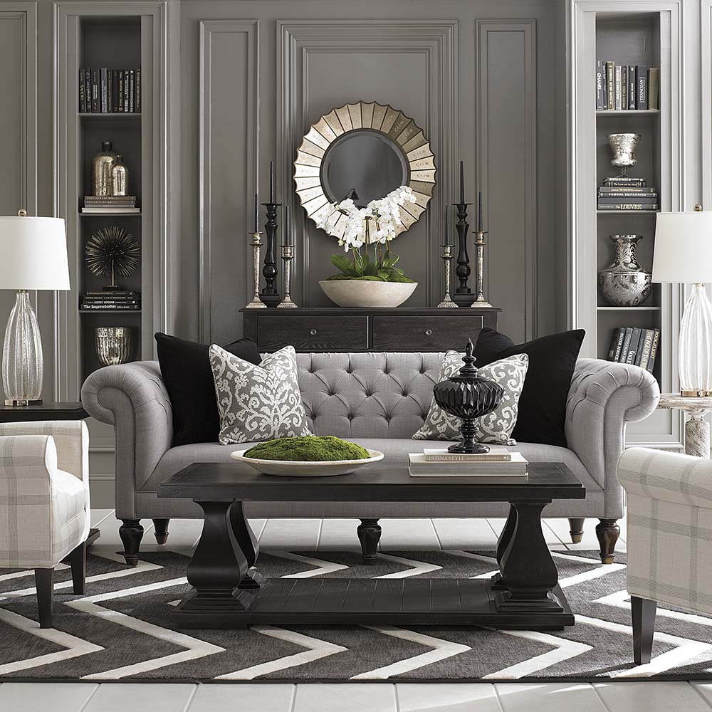 The Chesterfield sofa from American manufacturer Bassett. The model is made with a frame made of wood. Low back and large rounded arms adorned with decorative stitch. The upholstery is available from textiles. Colors to choose from for the company directory. They are decorated with decorative pillows.