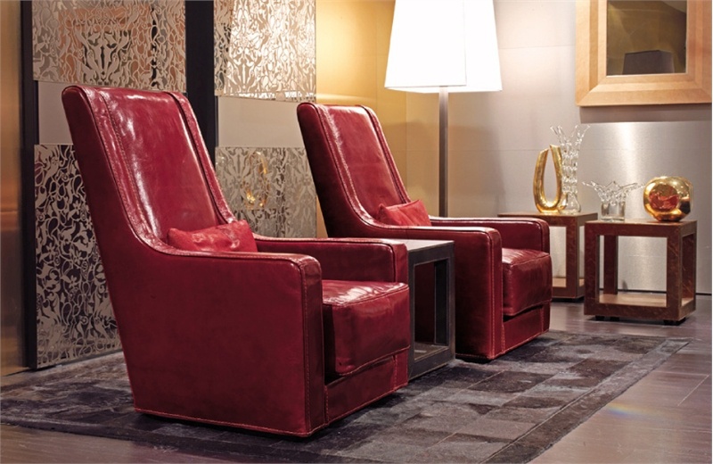 Chair W 510 Baron from the Italian manufacturer Longhi. The frame is made from solid wood, filler - polyurethane foam and goose down, upholstery - leather or textiles from a range of companies. The Baron chair is a classic shape with a modern edge. Product color red.
