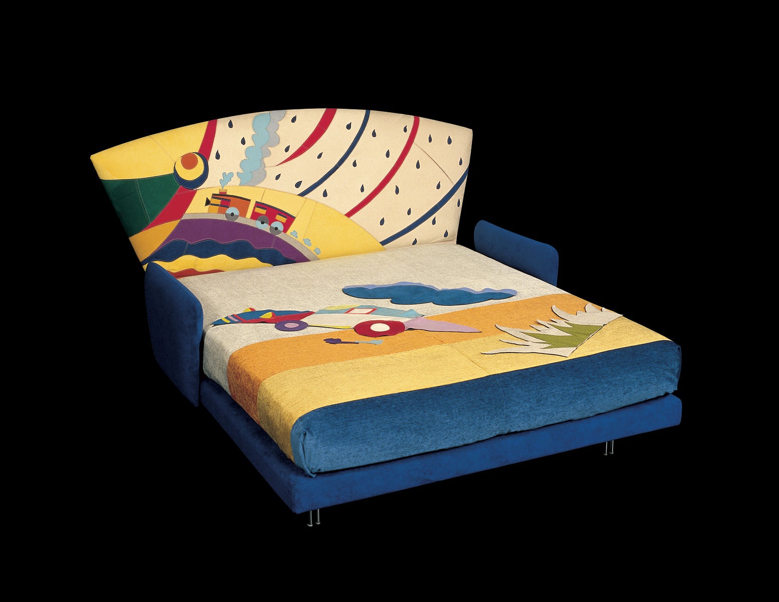 The Trenino baby letto bed from Italian manufacturer Il Loft. The frame is made of wood and metal, completely hidden metal legs. The model with upholstered headboard. Upholstery textile. Filler - polyurethane foam. Option color and texture to choose from a collection company. The perfect choice for a modern child's room interior.