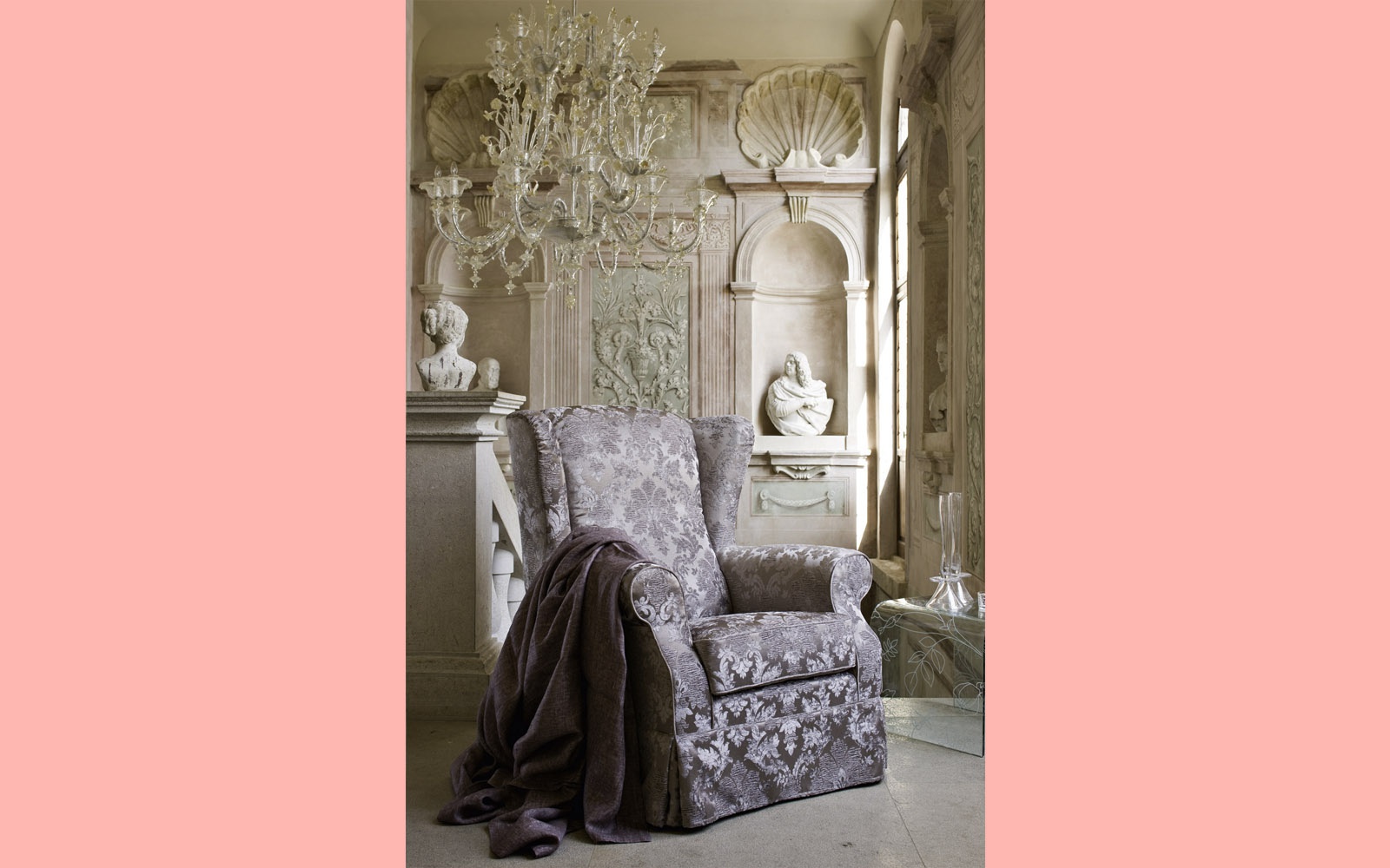 The Catalina classic chair from the Italian manufacturer Alberta Salotti. Upholstery - textiles from the company portfolio. Colours in stock. The perfect choice for a living room in classic style.