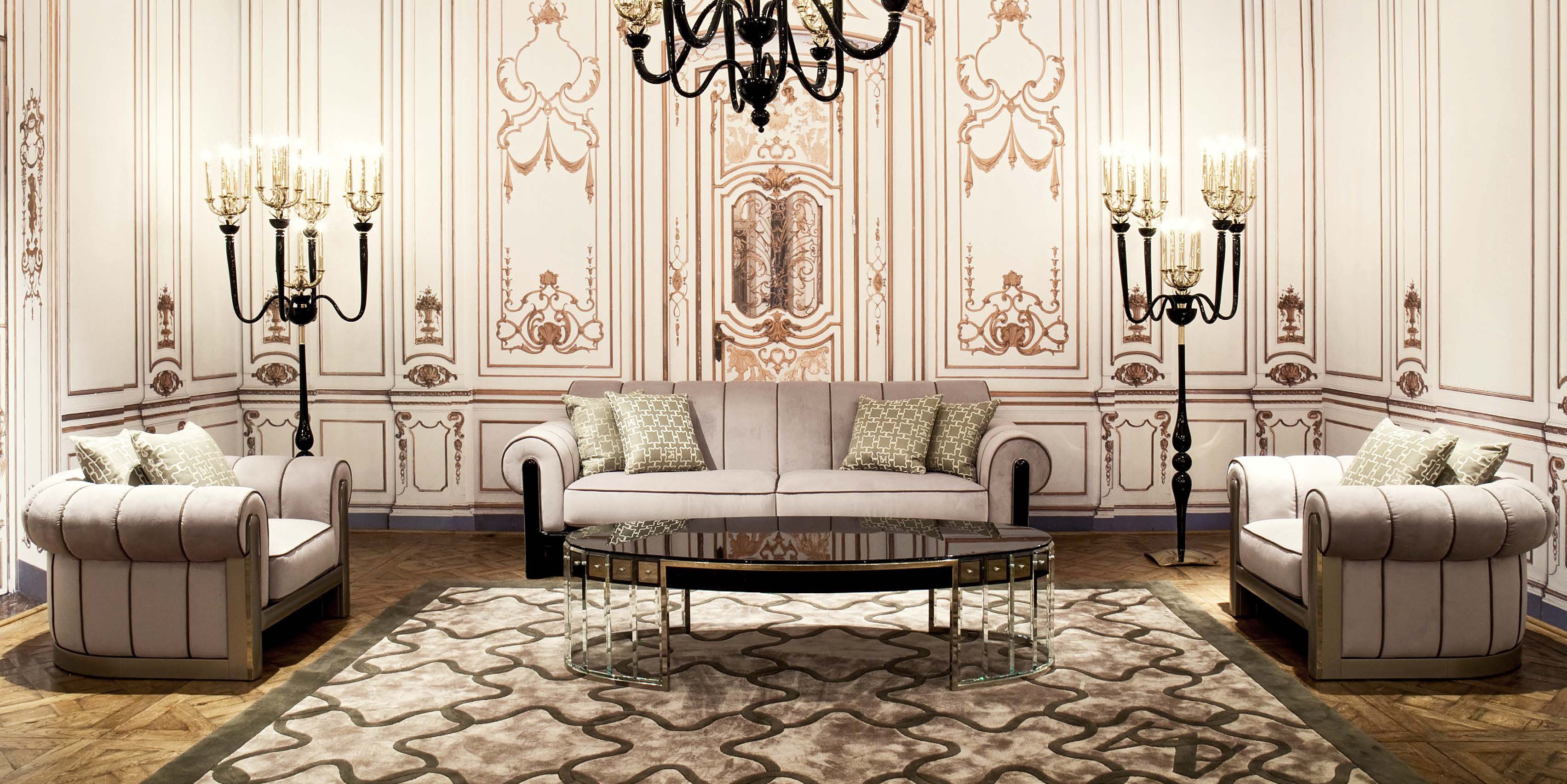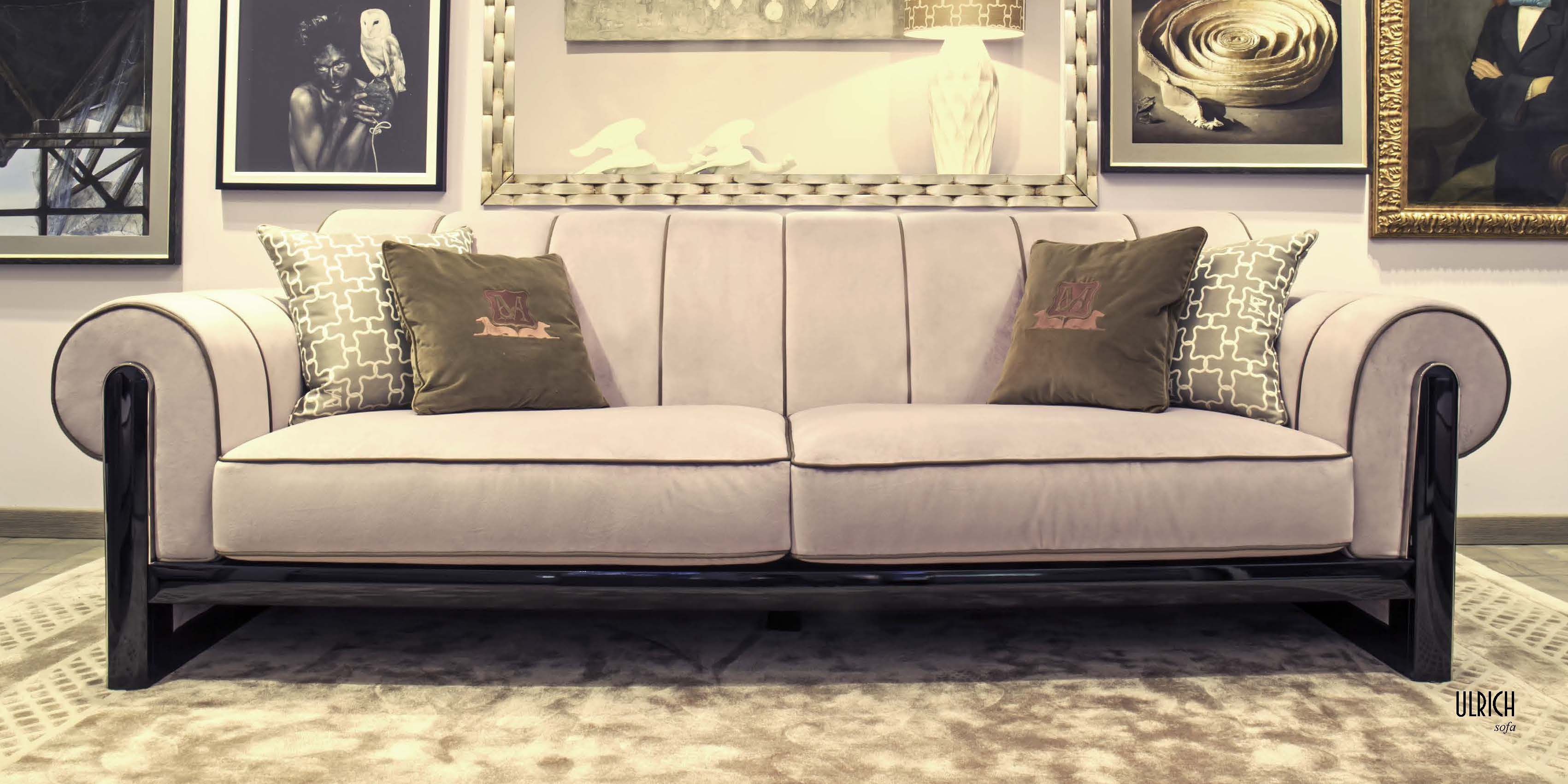 Sofa set Ulrich from the Italian manufacturer Formitalia. Set from the collection Samuele Mazza, consists of double sofa, armchairs and coffee table. The frame is made of natural wood, upholstery - textiles. Decorative items made of metal. The model is made in modern style.