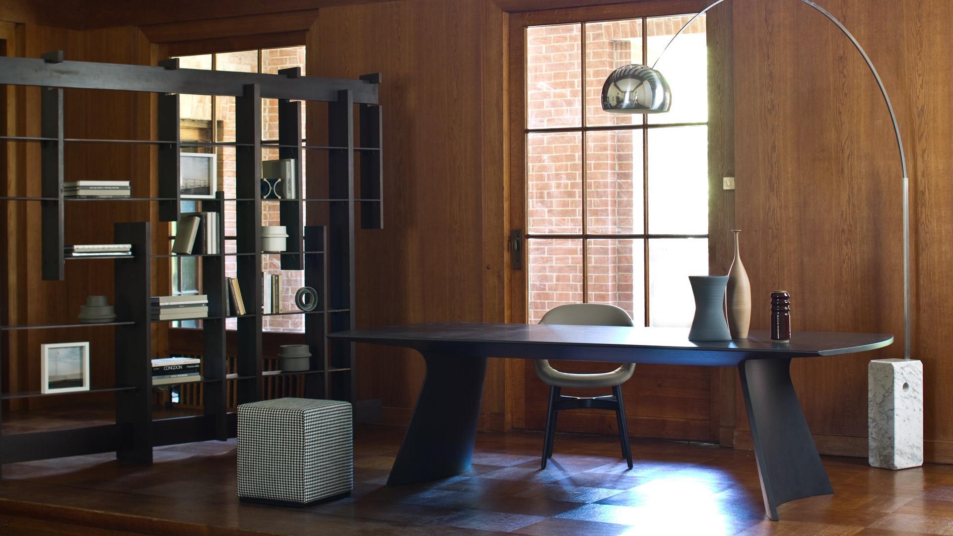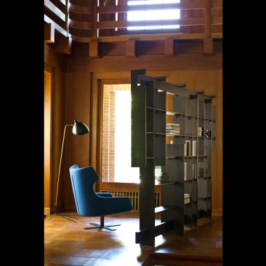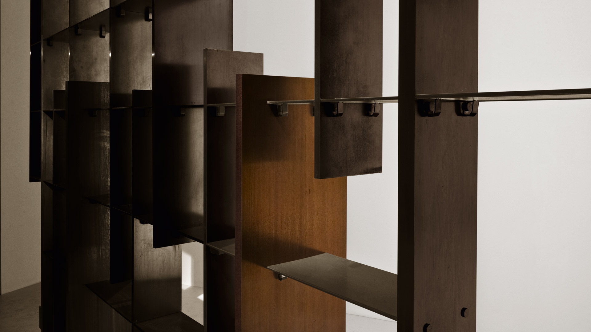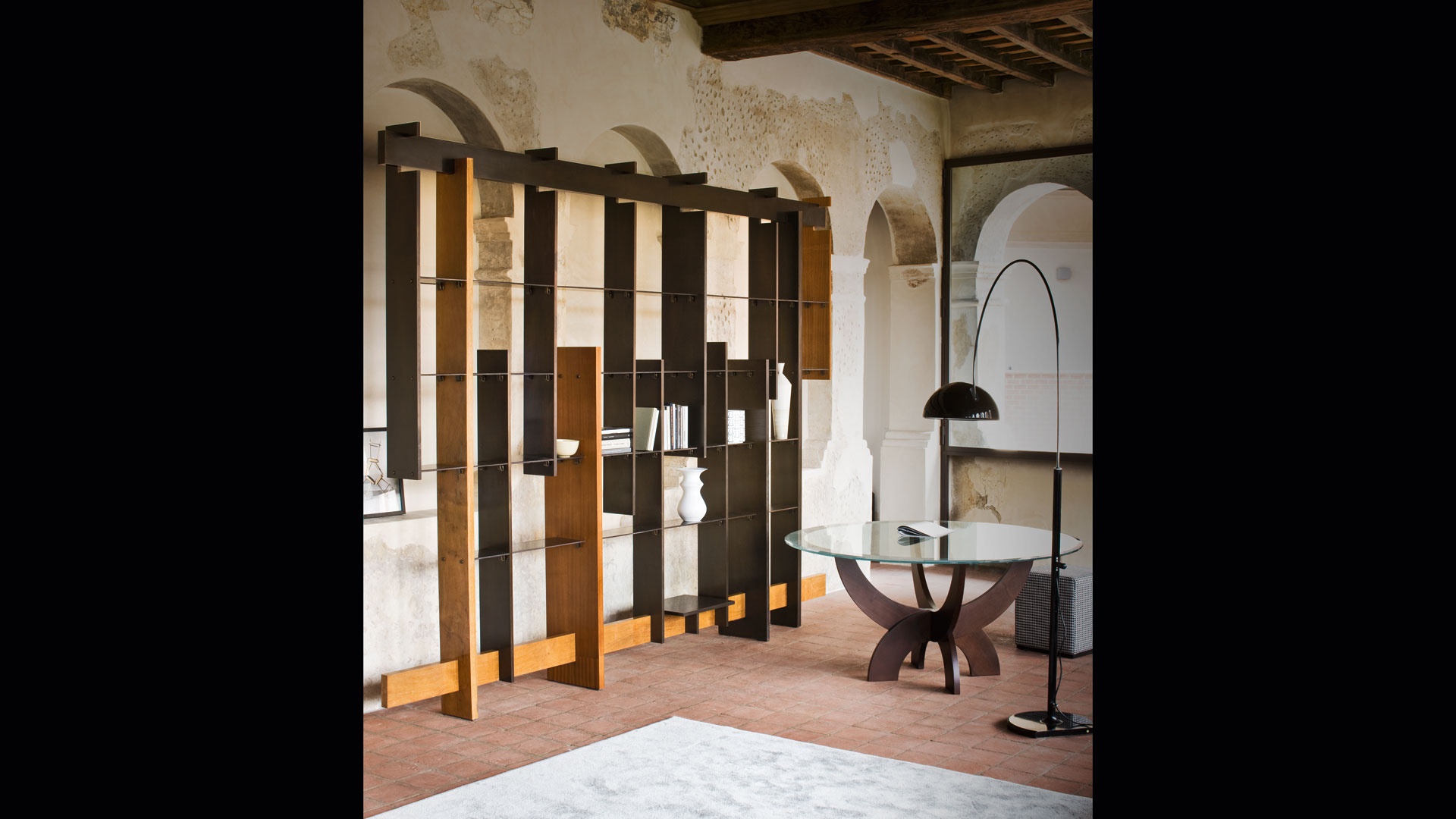 Rack f.t.b. for books from the Italian manufacturer Busnelli. The frame is made of natural wood, the surface is treated with varnish or wax from the range of the campaign. Shelves made of wood, tempered glass or metal. The rack can be mounted to a wall or can stand separately. The model is designed for modern interiors. Colours in stock.