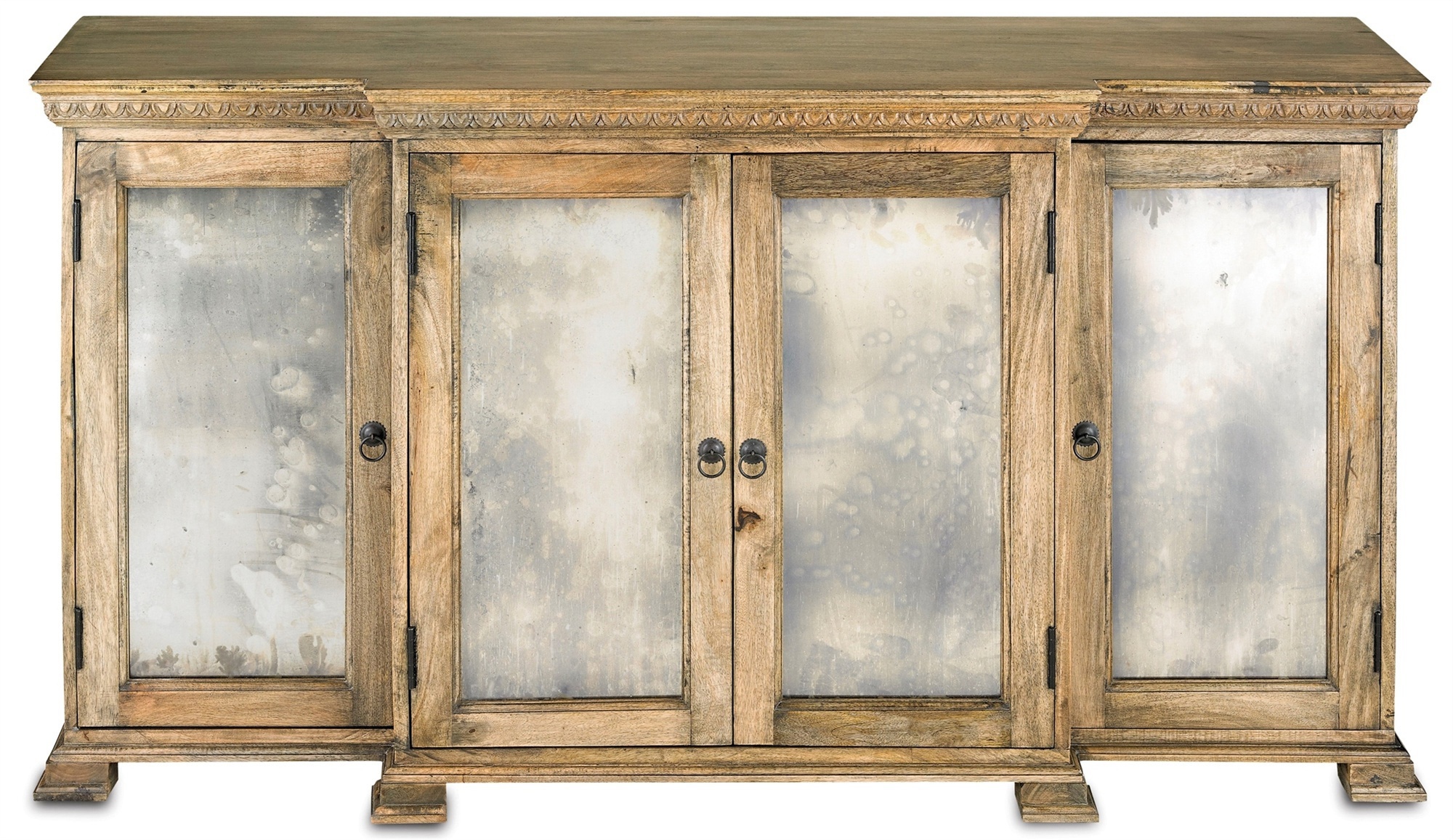 Sideboard Ellis from the American manufacturer Currey & Company. The body is made of wood. Accessories metal. Finish — natural wood with a slight patina. The doors have antique mirror fronts and one stationary shelf. Beautiful model in Provence style to any interior.