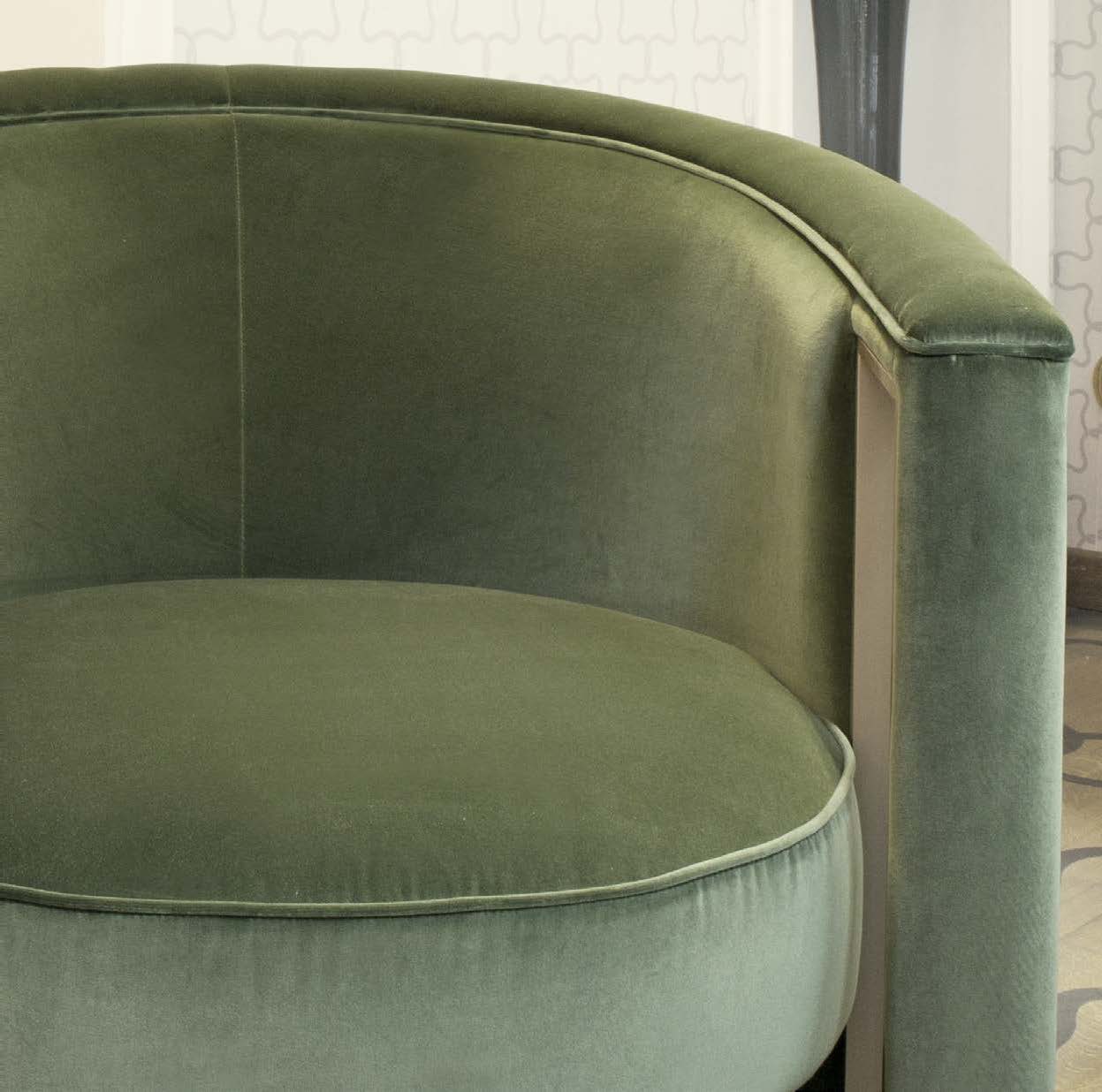Rachele chair from the Italian manufacturer Formitalia. Collection Samuele Mazza. Upholstery textile from the company portfolio. The frame is made of plywood, decorative items made of metal (brass). The model is made in modern style. Colours in stock.