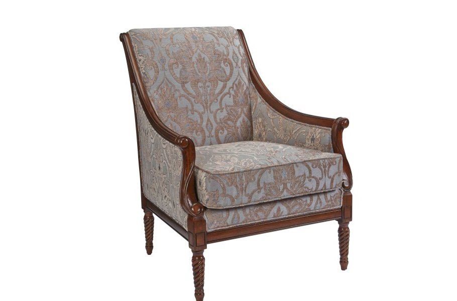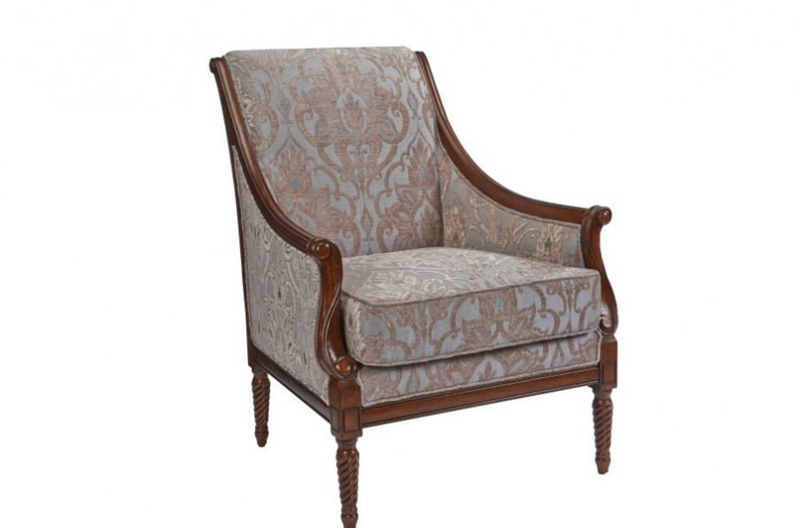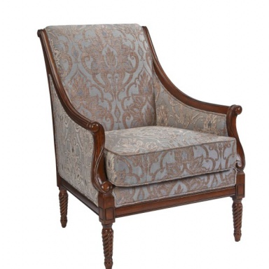 The Alta chair from the American manufacturer Avenue B. the Model with a high back. The frame and tapered legs made of wood and decorated with carvings. The upholstery is made of textile cloth. Seat cushion is removable.