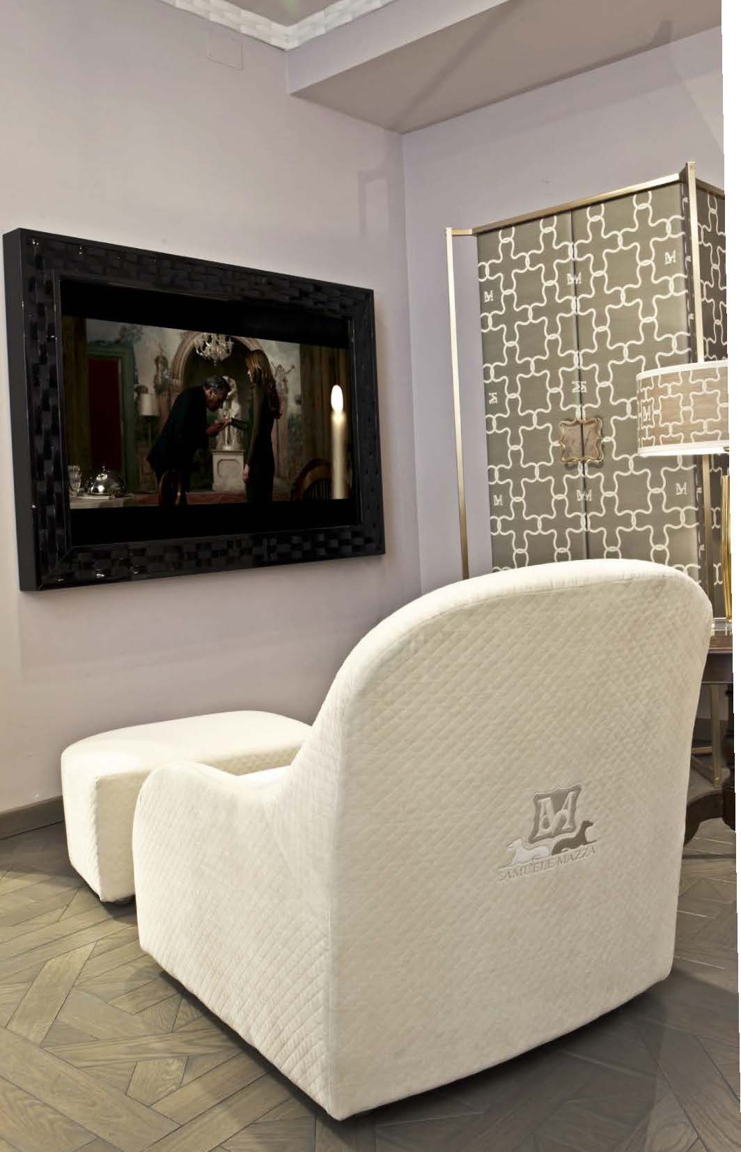 Armchair with pouf Victoria from the Italian manufacturer Formitalia. The model is made in a modern style, collection Samuele Mazza. Frame made of natural wood, upholstery - textiles. Colours in stock.
