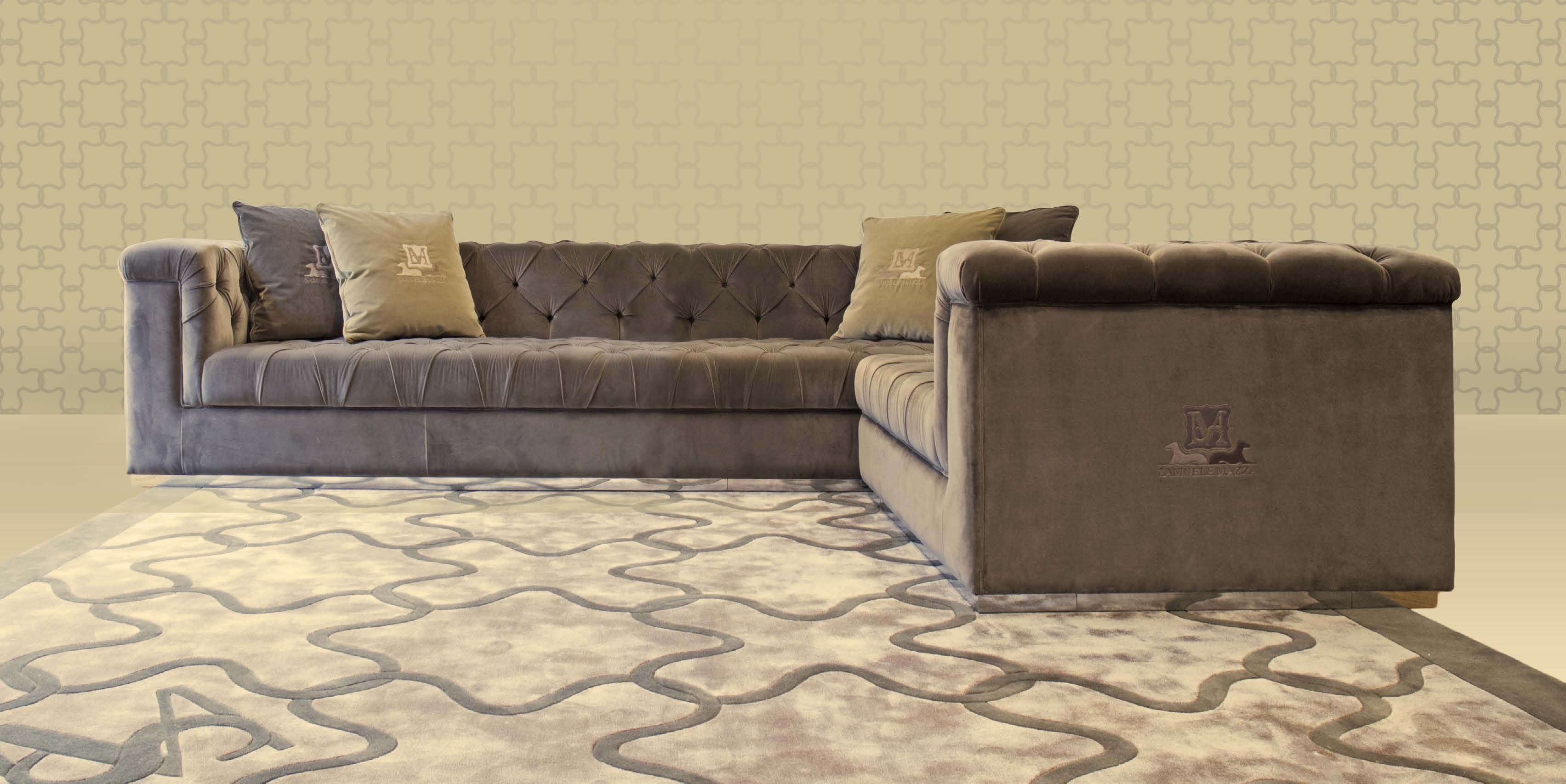 Corner sofa Roma from the Italian manufacturer Formitalia. The model is made in a modern style, collection Samuele Mazza. Frame made of natural wood, upholstery - textiles. Legs made from metal. Colours in stock.