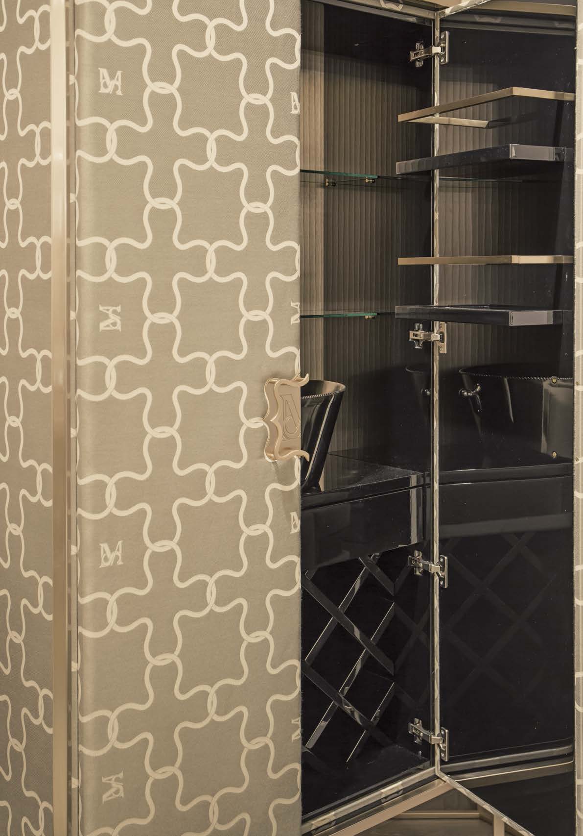 Cabinet for bar Terragni from the Italian manufacturer Formitalia. Model of the collection Samuele Mazza. Frame made of metal, body - MDF, upholstery - cloth from the company portfolio. The model is in modern style. Colours in stock.