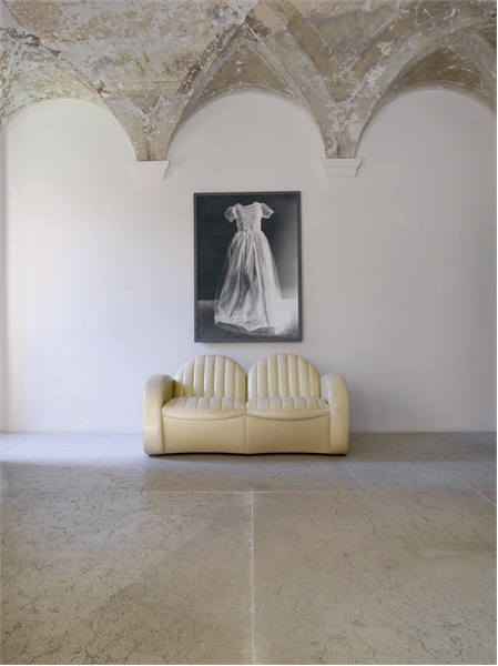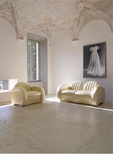 Botero sofa from Italian manufacturer Mascheroni. The frame is made from solid beech or poplar, filler - foam, upholstery - leather. Beautiful model a great choice for living room in modern style. Product color white.