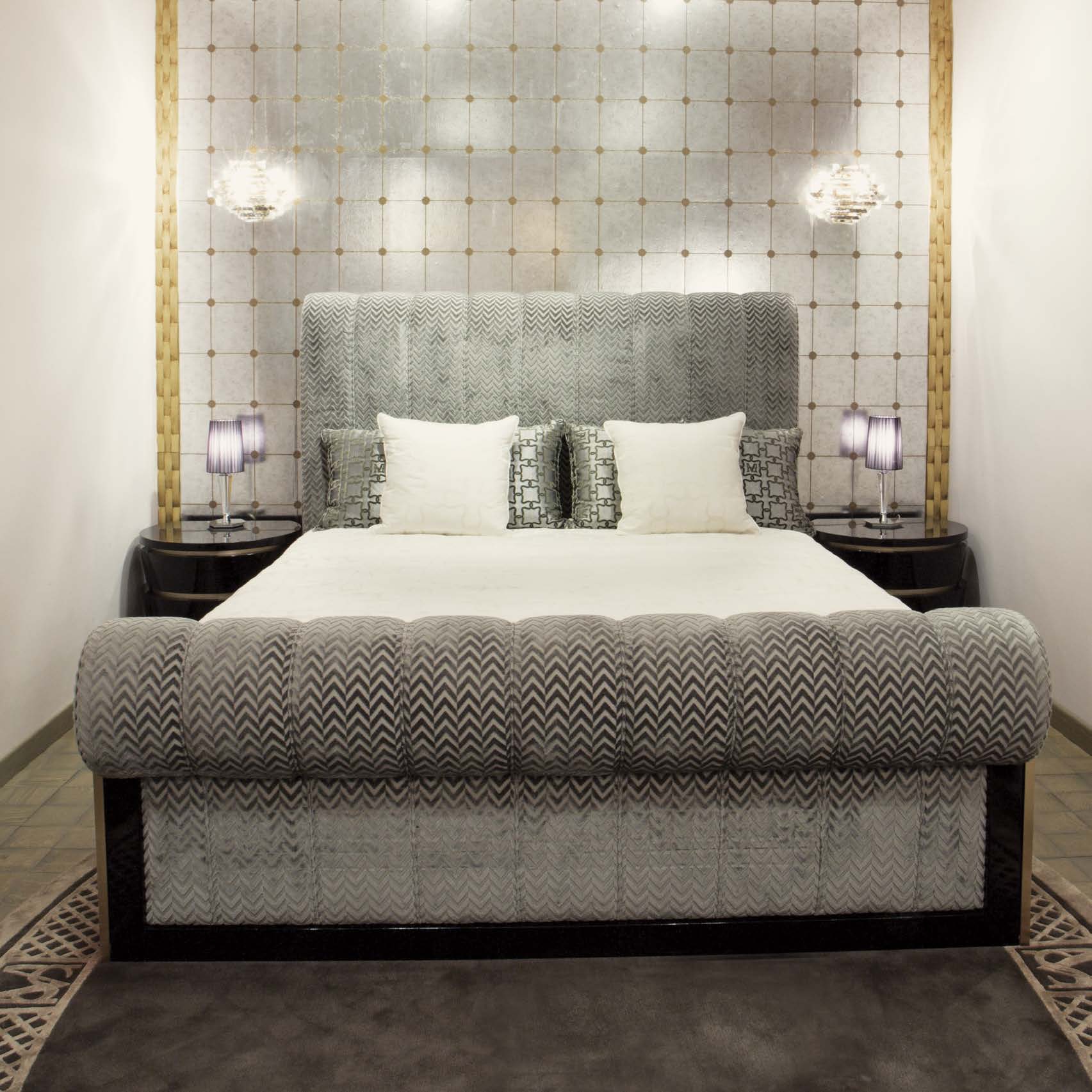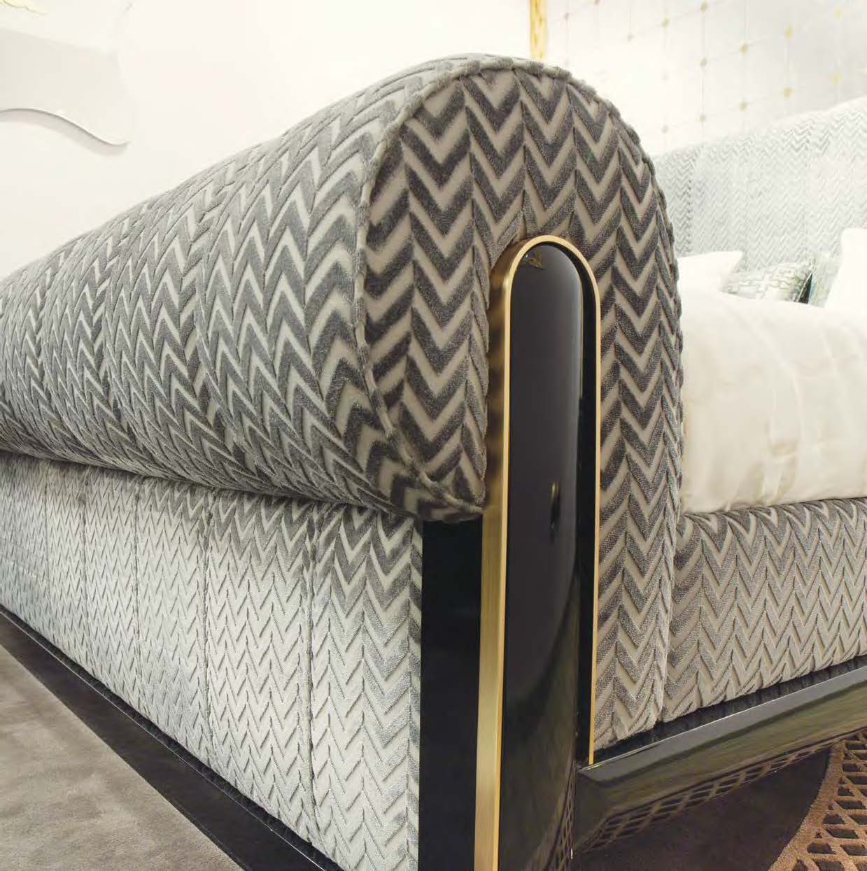 Ulrich has a double bed with high headboard and soft from the Italian manufacturer Formitalia. The model is made in a modern style, from the collection of Samuele Mazza. Frame made of natural wood, upholstery - textiles from the company portfolio. Colours in stock.