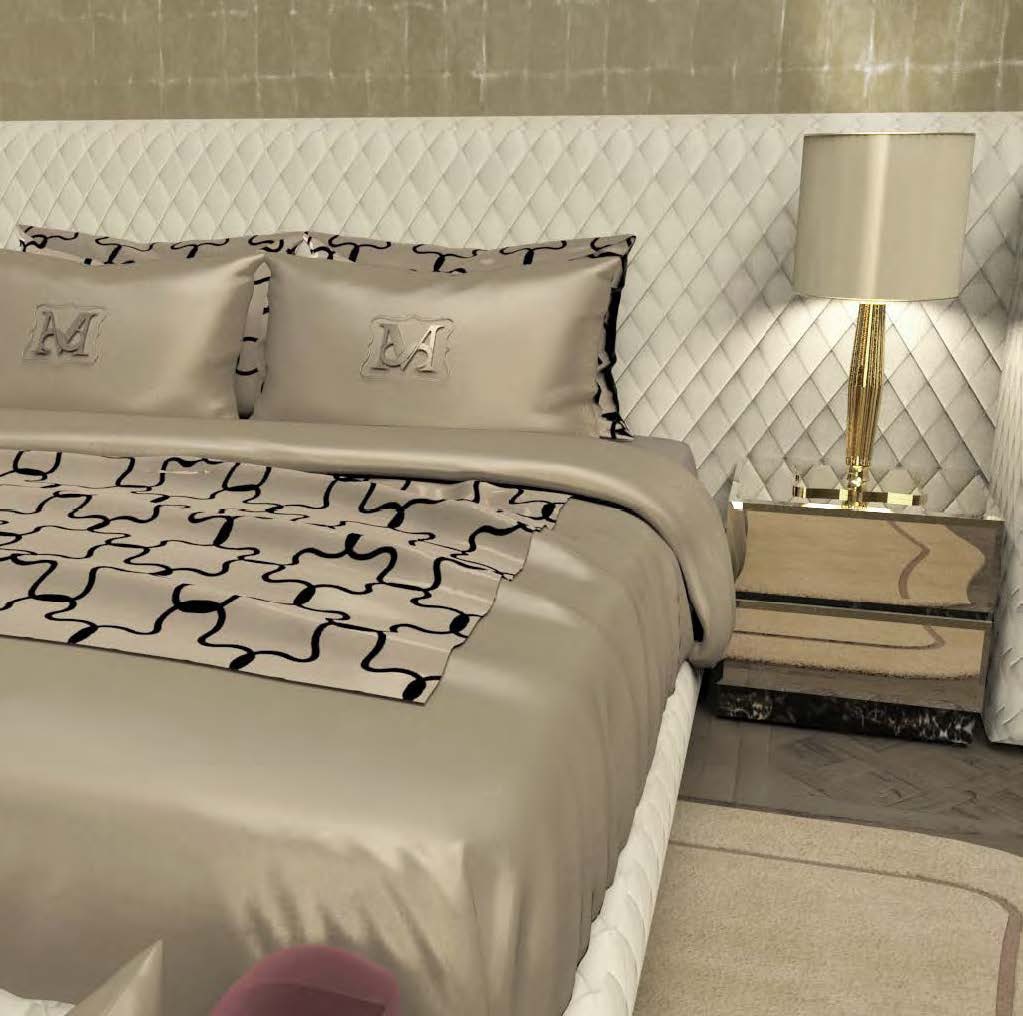 A set for the Royal bedrooms from Italian manufacturer Formitalia. The furniture is designed in modern style, from the collection of Samuele Mazza. Frame made of natural wood, finish - the lacquer from the company portfolio. Decorative items made of marble. The facade of the drawers and cabinets of mirrored glass. Colours in stock.