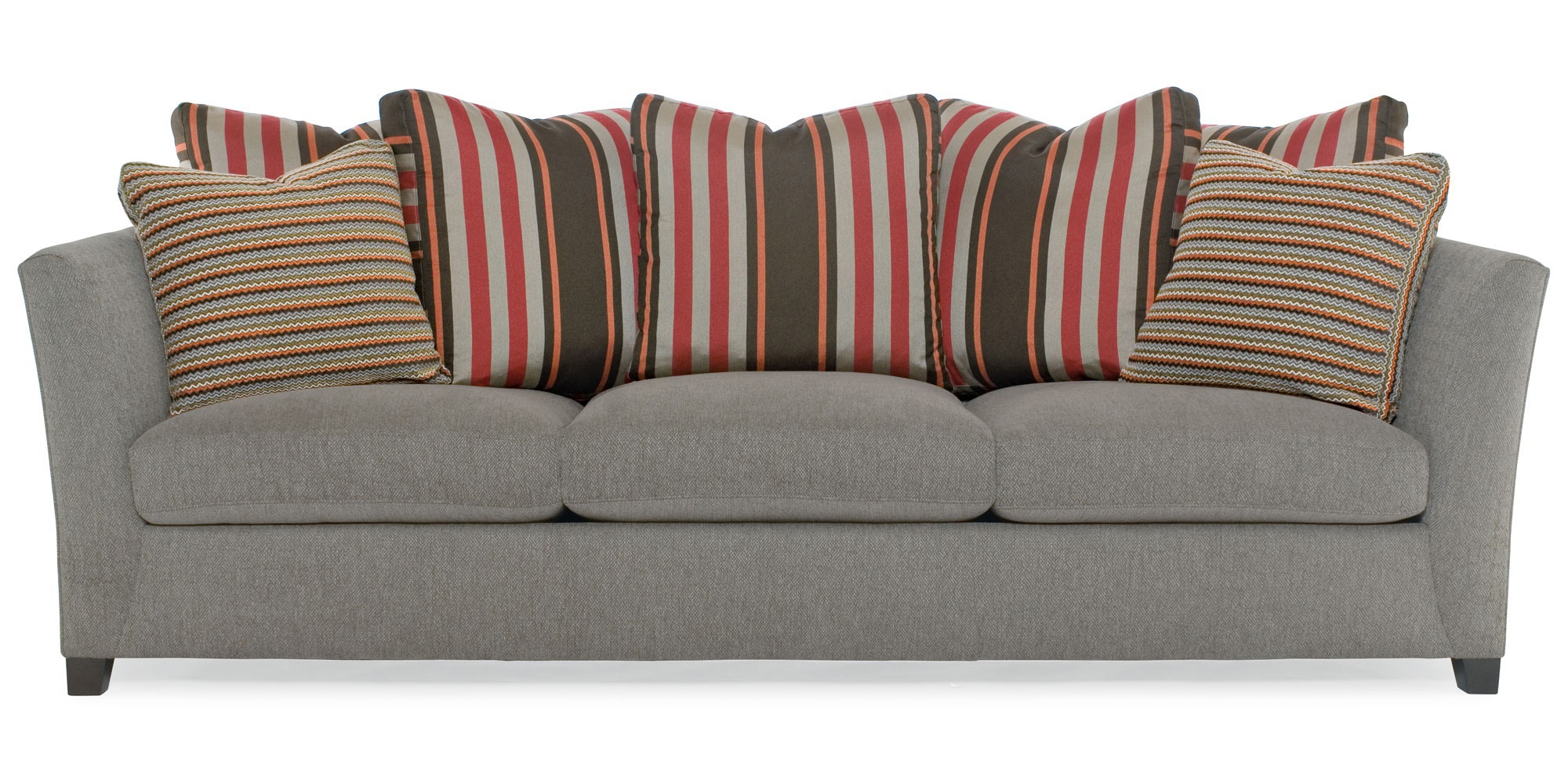 Three seater sofa from Crosby American manufacturer Bernhardt. The frame and legs are made of wood. Finish with a varnish made from the company portfolio. The seat cushion is removable. The upholstery is made of textile fabric to be selected from manufacturer's catalogue. Decoration are decorative pillows.