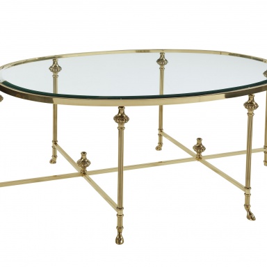 Coffee table from an American manufacturer La Barge. The model combines classic lines and modern style. The frame is of cast brass with glass top. Colours in stock.