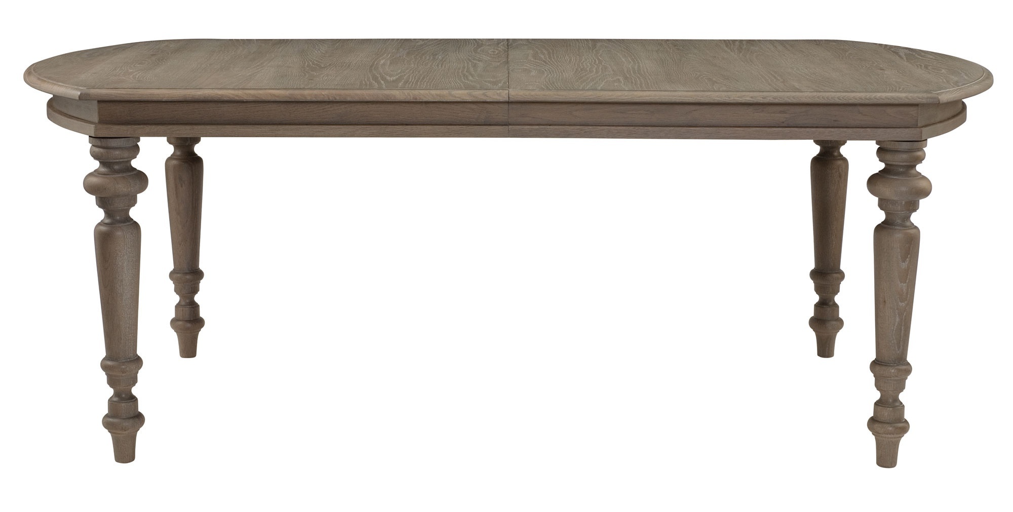 The Auberge Desk from an American manufacturer Bernhardt. Dining table with sliding table top. The counter is made of wood and veneered white oak. Legs made of carved wood. Excellent model for a large family or entertaining guests.