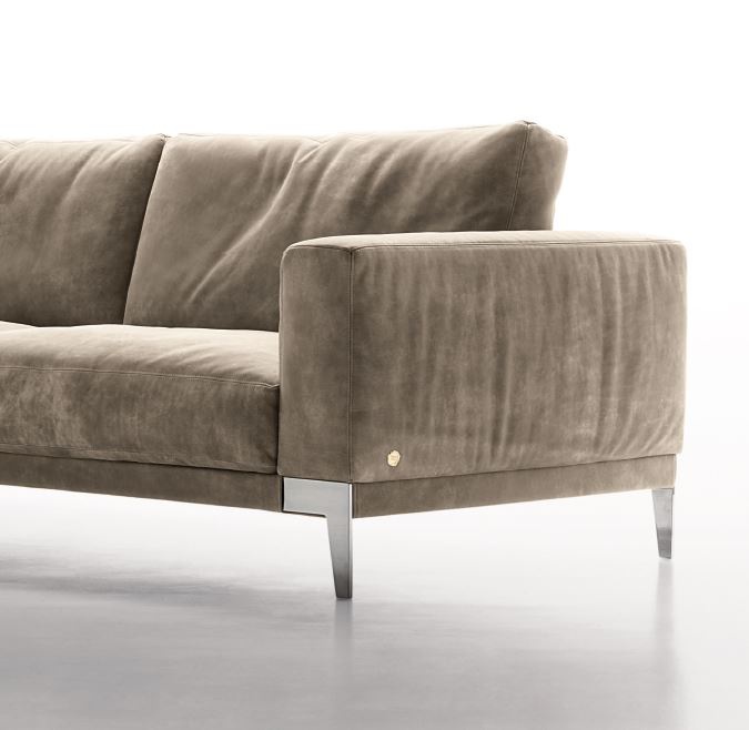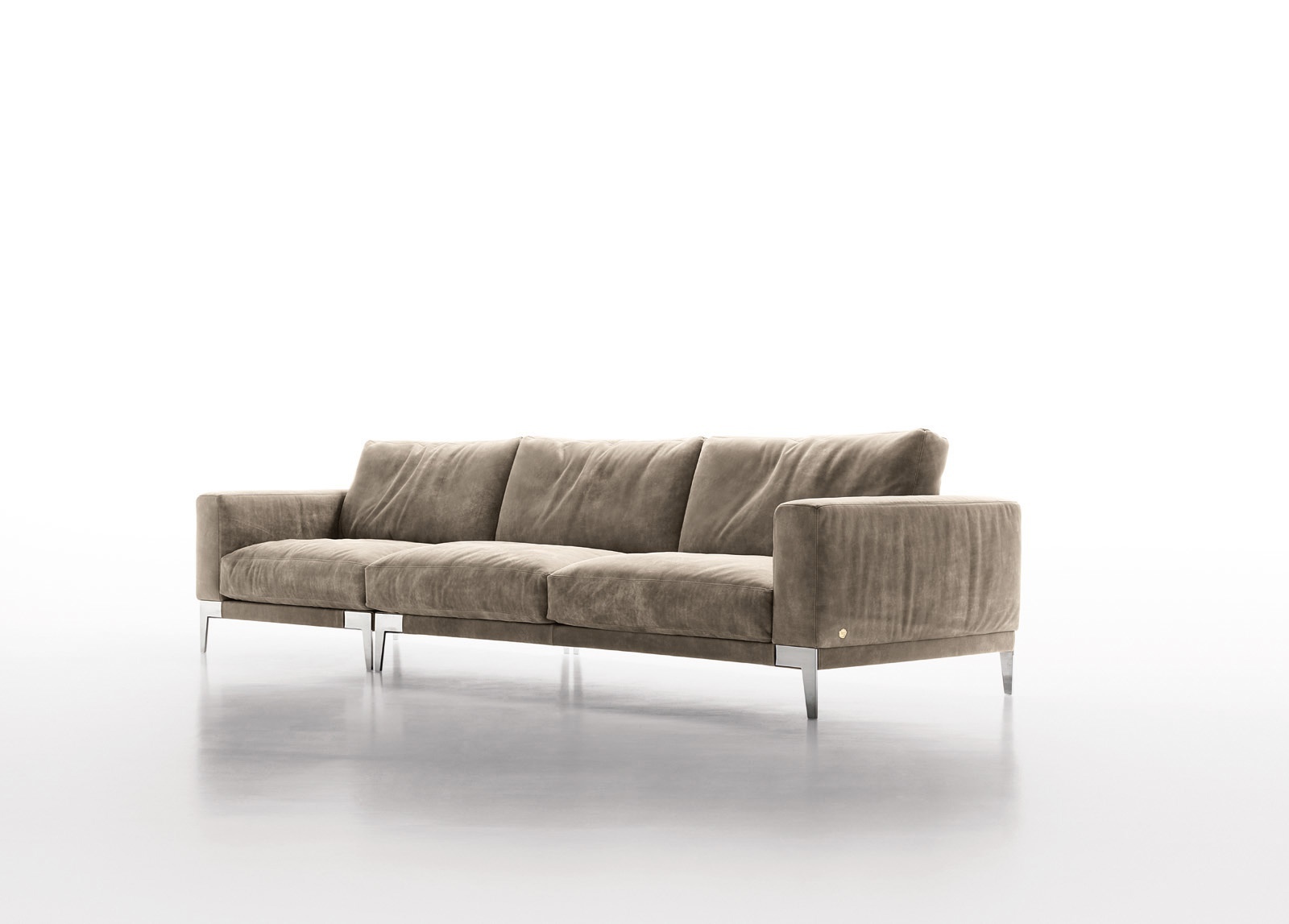 The Blues sofa from Italian manufacturer Alberta Salotti. Model triple. Upholstery - leather. The legs are made of chrome steel. Product color brown. A high level of comfort and design make this model suitable for any setting. A great choice for modern interiors.