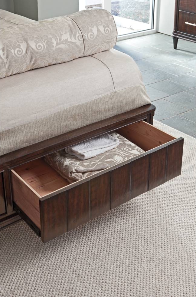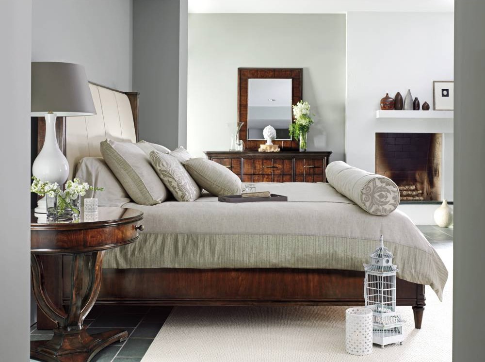 Double bed, Fair Park from an American manufacturer Stanley Furniture. Carried on the frame of the tree. Provides drawers for storage of linen with touch latches. High headboard with upholstery leather. Color from the manufacturer. The bed will certainly decorate the bedroom in modern style.