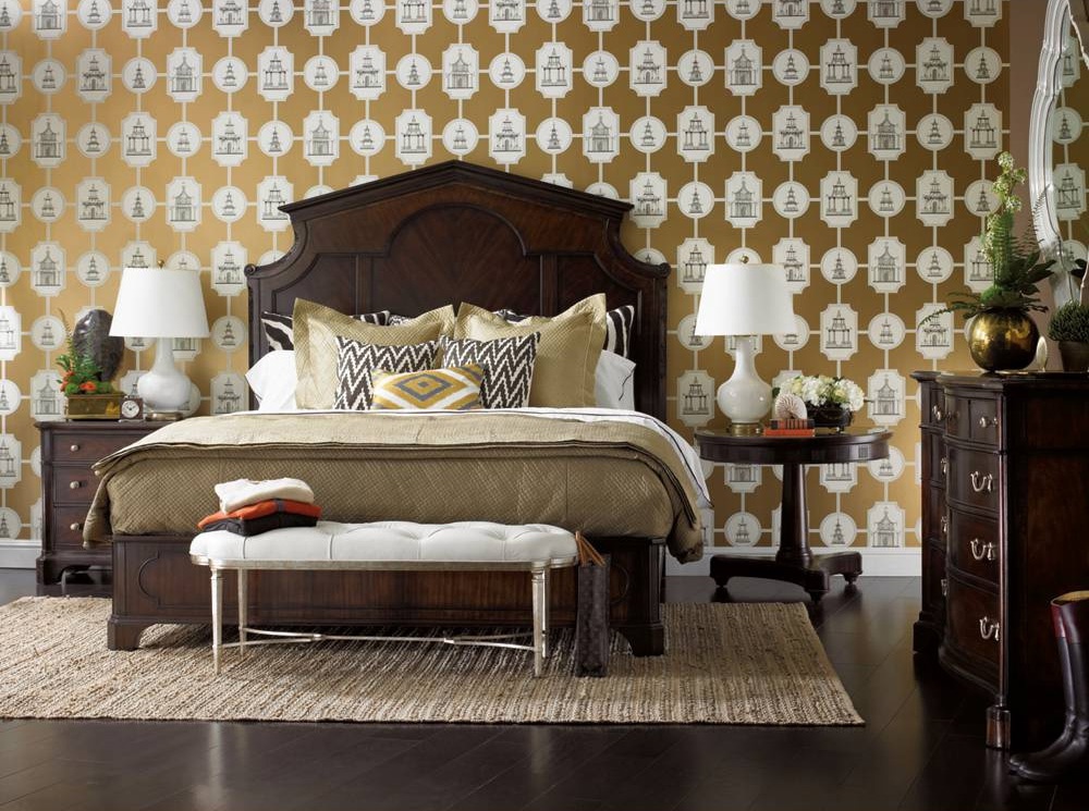 Double bed Cathedral from the American manufacturer. Stanley Furniture Company Inc. Carried on the frame of the tree. Model with high headboard. The surface is covered with lacquer from the collection of the company. High headboard with decorative hand carved.