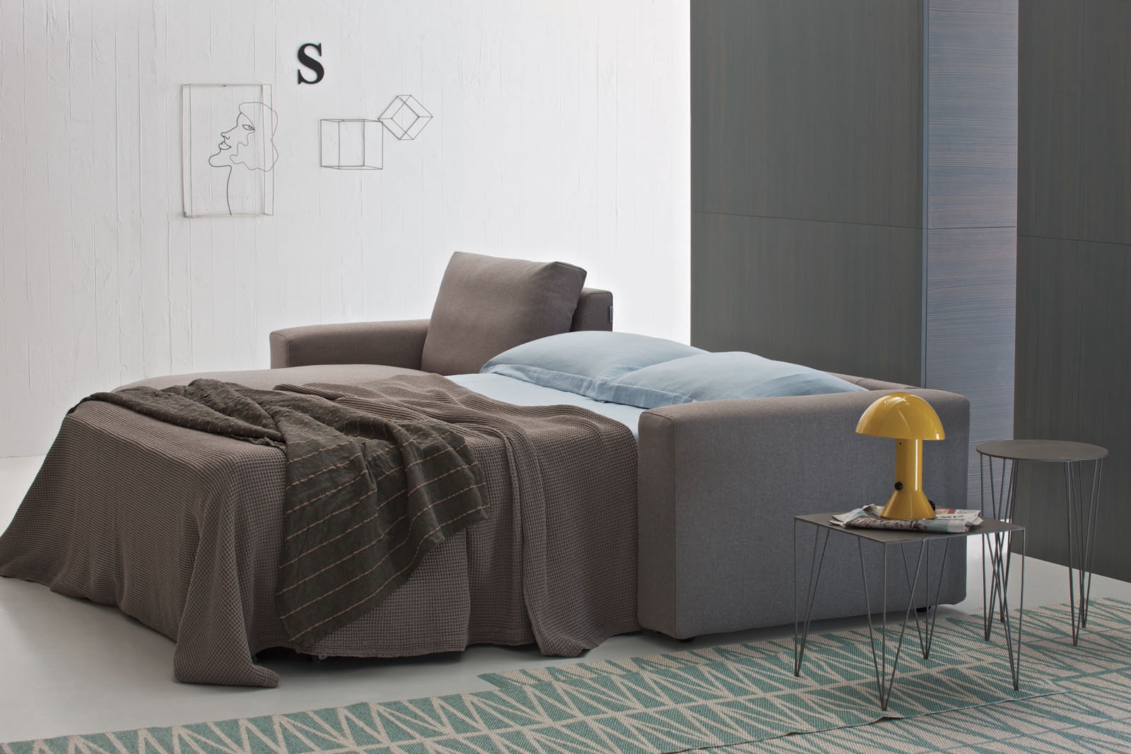 Sofa bed Togo from the Italian manufacturer Alberta Salotti. Caracas is made of solid wood, filler - polyurethane foam of different density, upholstered in textiles. The sofa easily converts into a bed. The sofa has a compartment for storing pillows or bed linen. A great choice for living room in modern style.