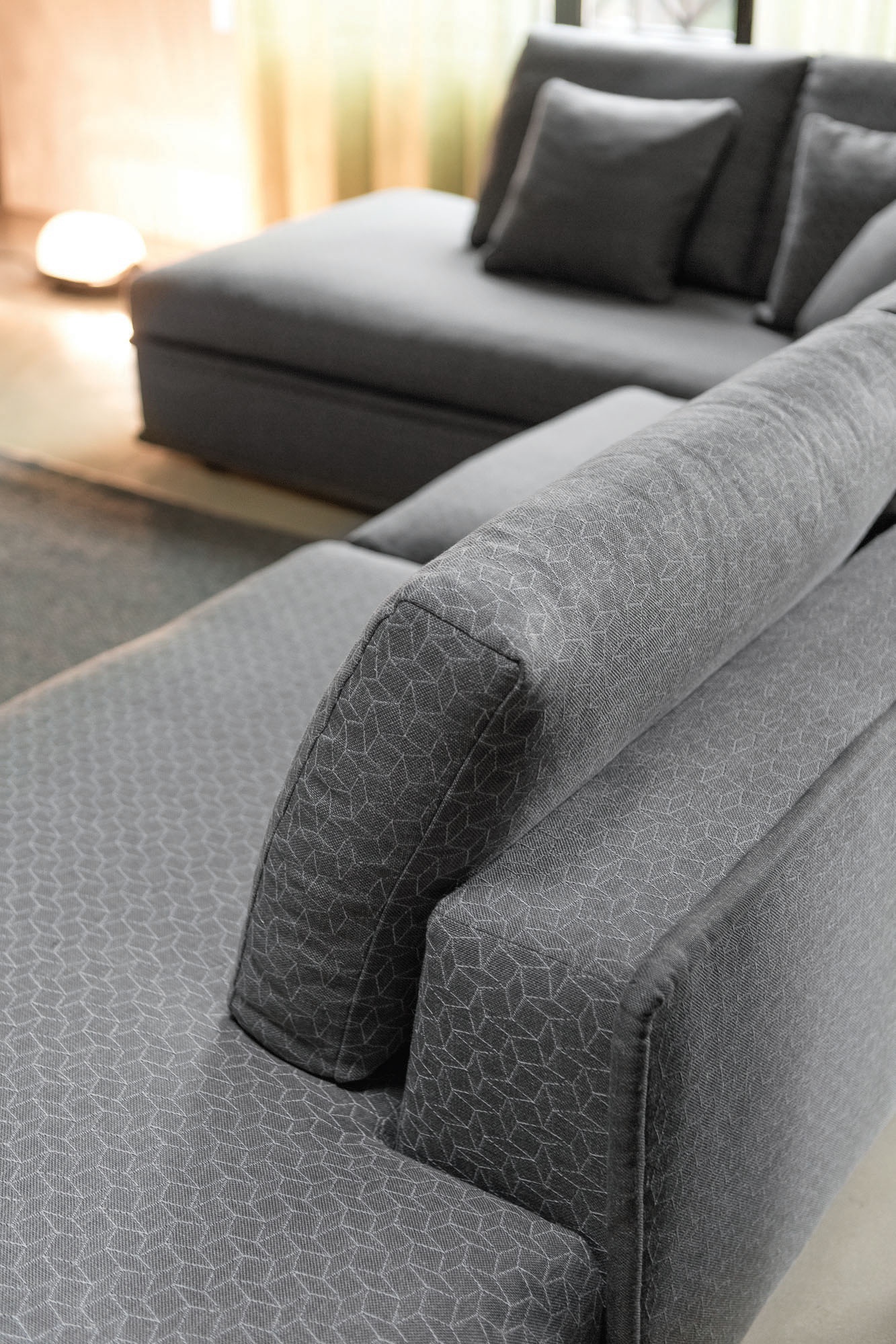 Simon modular sofa from Italian manufacturer Alberta Salotti. The frame is made of wood. Upholstery - textiles from the company portfolio. Filling - polyurethane foam (SPF), a quill pen and poliestrowy fiber. Large selection of modular elements allow the composition, ideally meets the needs of the customer. Colours in stock. The perfect choice for a living room in modern style.