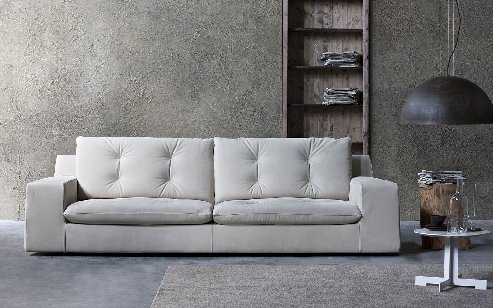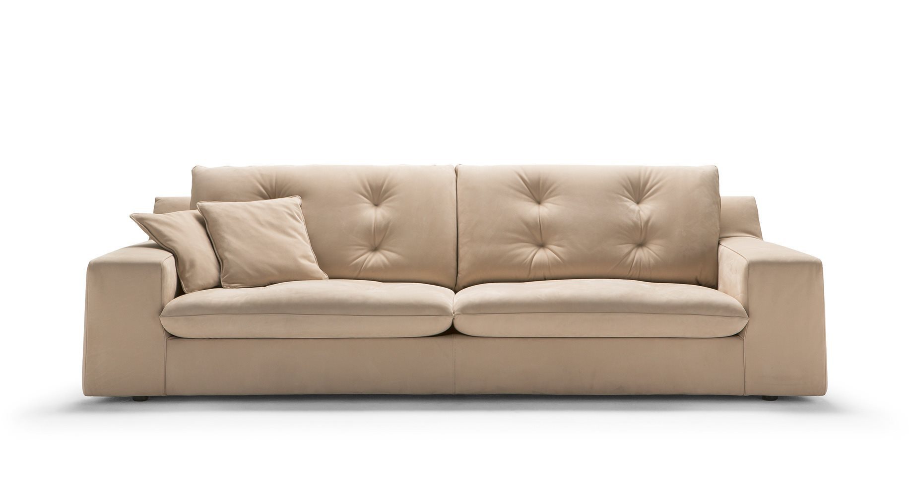 The Miami sofa from Italian manufacturer Alberta Salotti. Upholstery - leather or textiles from a range of companies. Filling - polyurethane foam (PUF). Colours in stock. The perfect choice for a living room in modern style. The model is also available in sectional (modular) version.