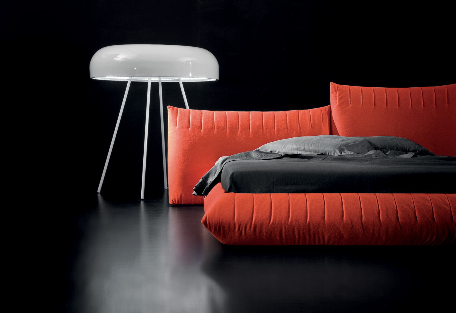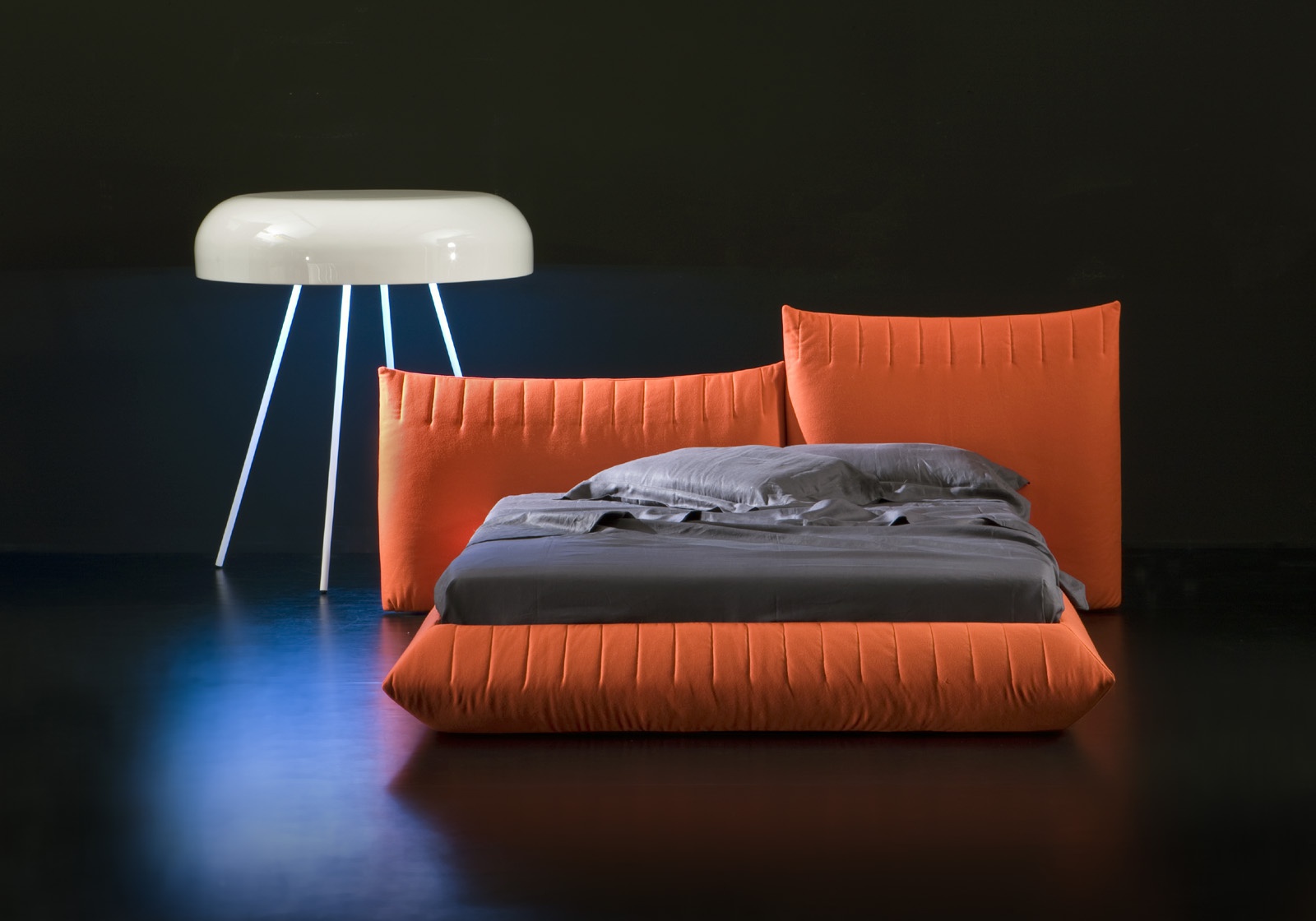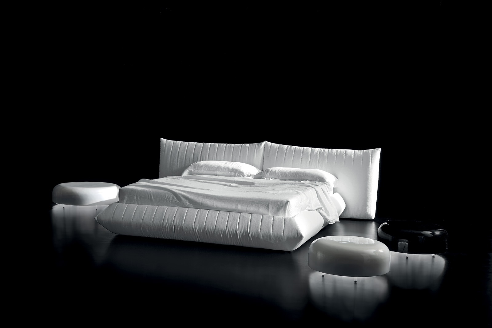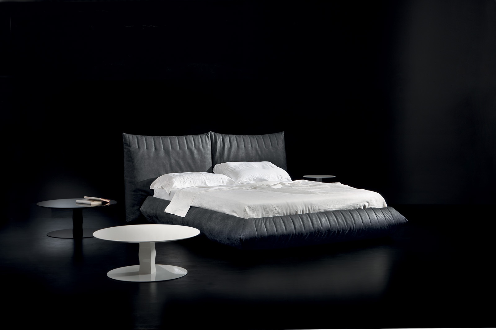 The Bellavita bed from Italian manufacturer Alberta Salotti. The upholstery is made of leather or textiles from a range of companies. Model with a double cushioned headboard. Provides a niche for storage of bed linen. Perfect choice for modern interiors.