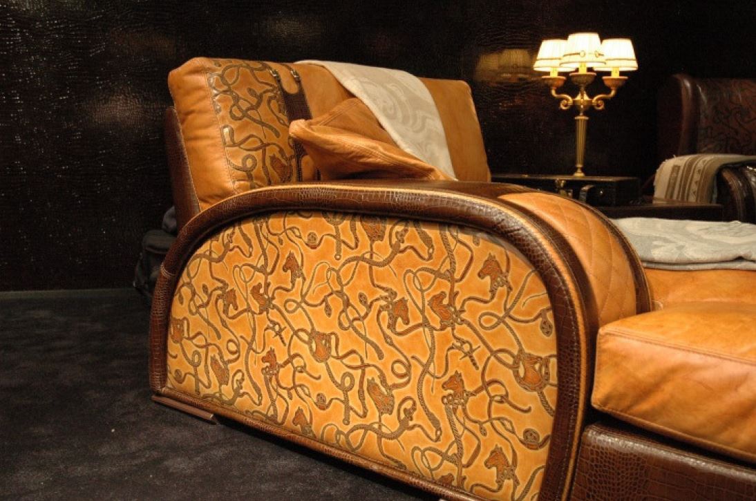 | Description: | Daybed Ascot One 911 from the Italian manufacturer Formitalia. Upholstery - horse leather, color combination of cognac and chocolate shades. decor - metal, gold. Finish on the photo. |