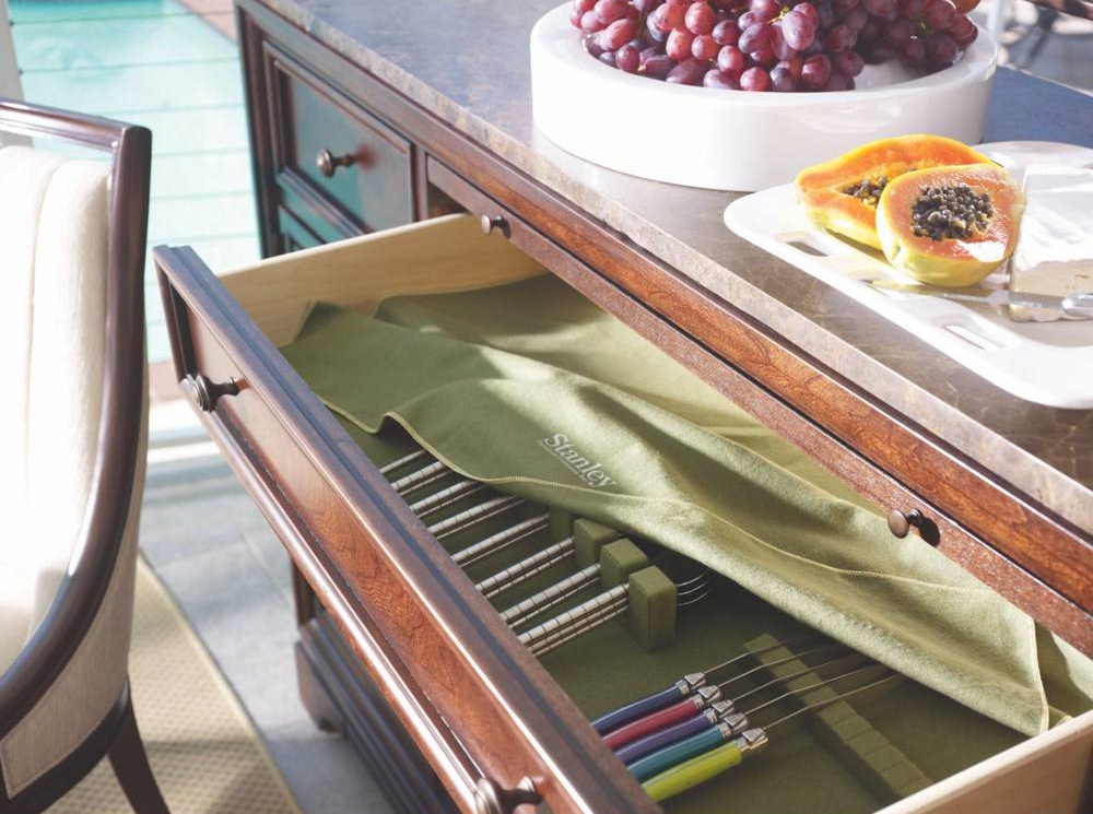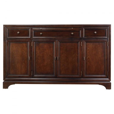 The Continuum buffet from an American manufacturer Stanley Furniture. Made of wood. Cherry finish with pronounced natural color. Fittings made of brass. Equipped drawers the storage tray of Cutlery. Marble top is possible as an option.