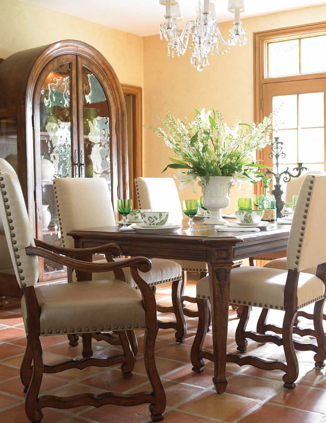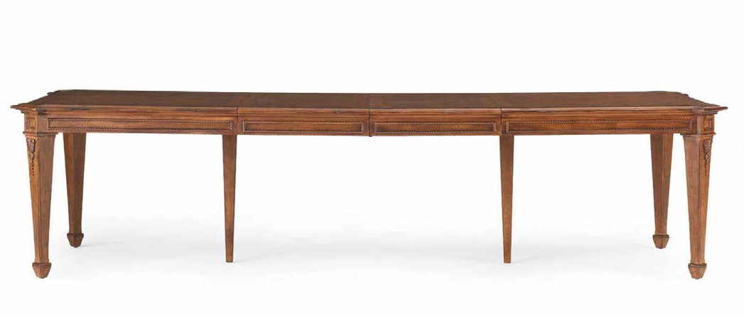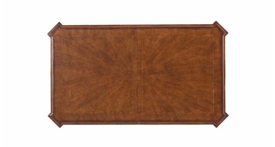 Dining table American manufacturer Hickory White. The presented model dining table of rectangular form with cut corners original. The edge of the table is decorated with a manual carving. The model on six legs. Color in a dark tone wood. Will perfectly complement a dining room in classical style.