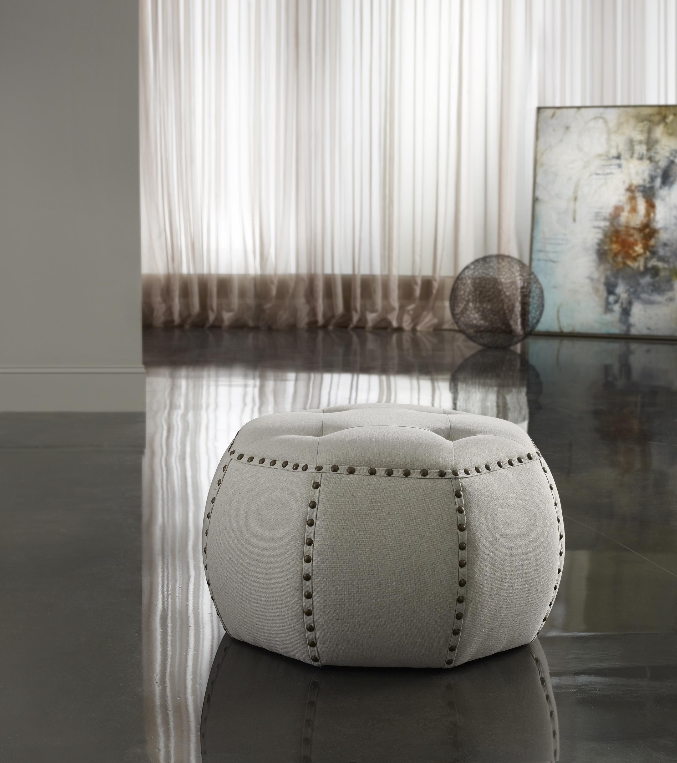 Pouf round Banner with soft padding from the American manufacturer Sam Moore. The model is made in American style. Upholstery made of textile or genuine leather. Filler - polyurethane foam. Color models can be chosen according to the catalogue of the manufacturer.