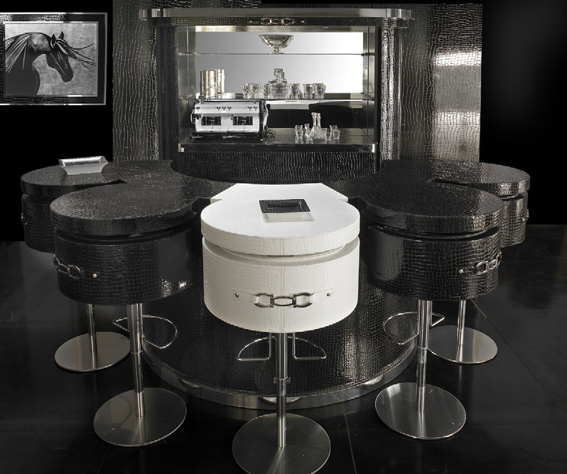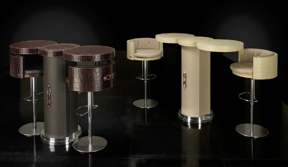 Margherita bar stool from the Italian manufacturer Formitalia, the collection Boutique. The base and frame is of metal, upholstery is made of leather. Offers a wide range of colors.