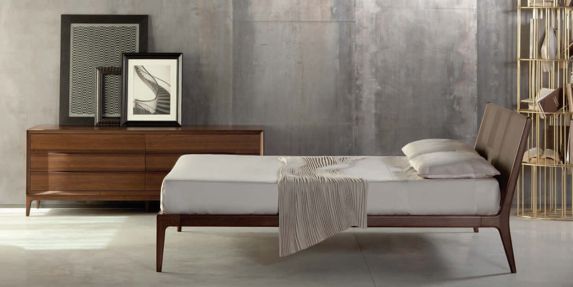 Double bed Brad from the Italian manufacturer Ceccotti. The frame is made of wood of American walnut. Upholstery - leather or textiles from a range of companies. Model on elegant legs. Colours in stock. Design models for bedroom interior.