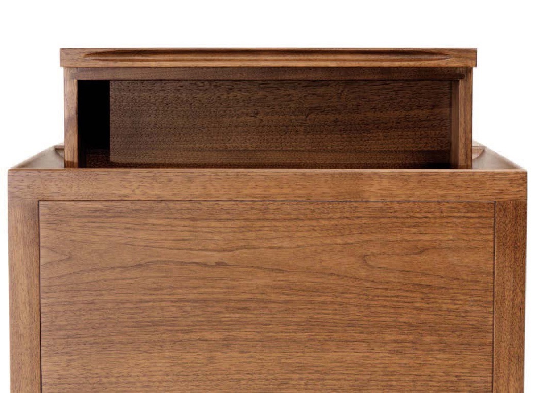 Bedside table comodino bedside brad from the Italian manufacturer Ceccotti. The frame is made of wood of American walnut. Model on elegant legs. Colours in stock. Design models for bedroom interior.
