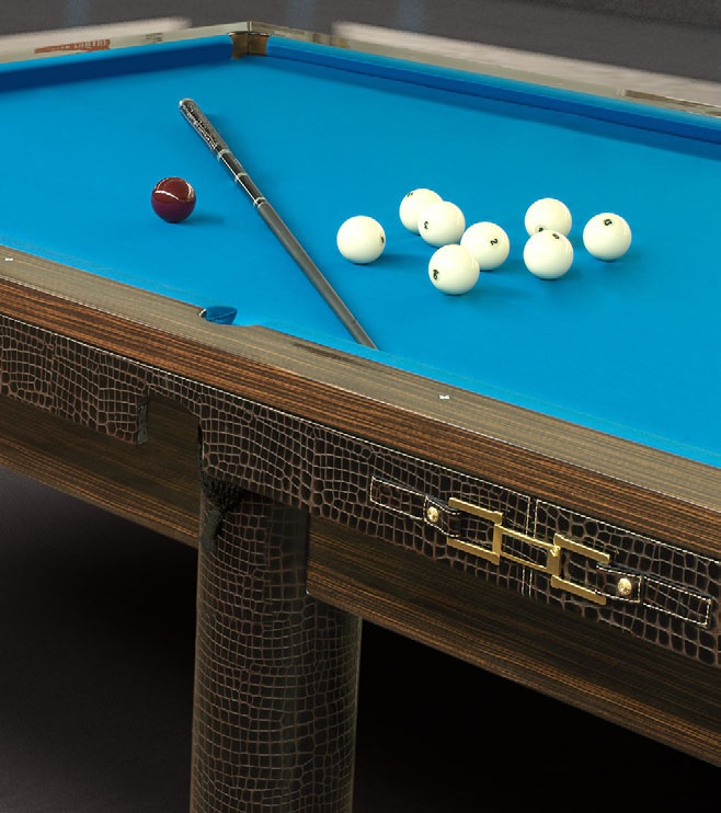 The billiard table Playing A Round from the Italian manufacturer Formitalia, the collection Boutique. The frame is made of wood, finished with natural leather top and textile. Decoration are decorative metal items made of brass in gilt. Offers a wide range of colors.