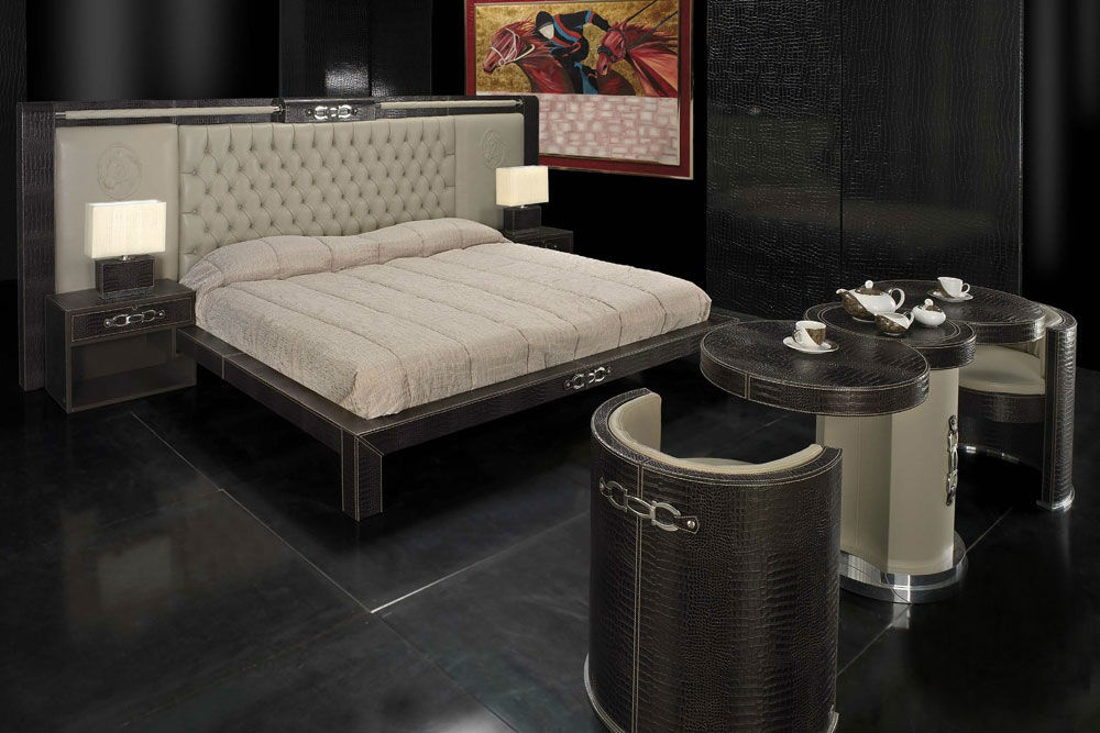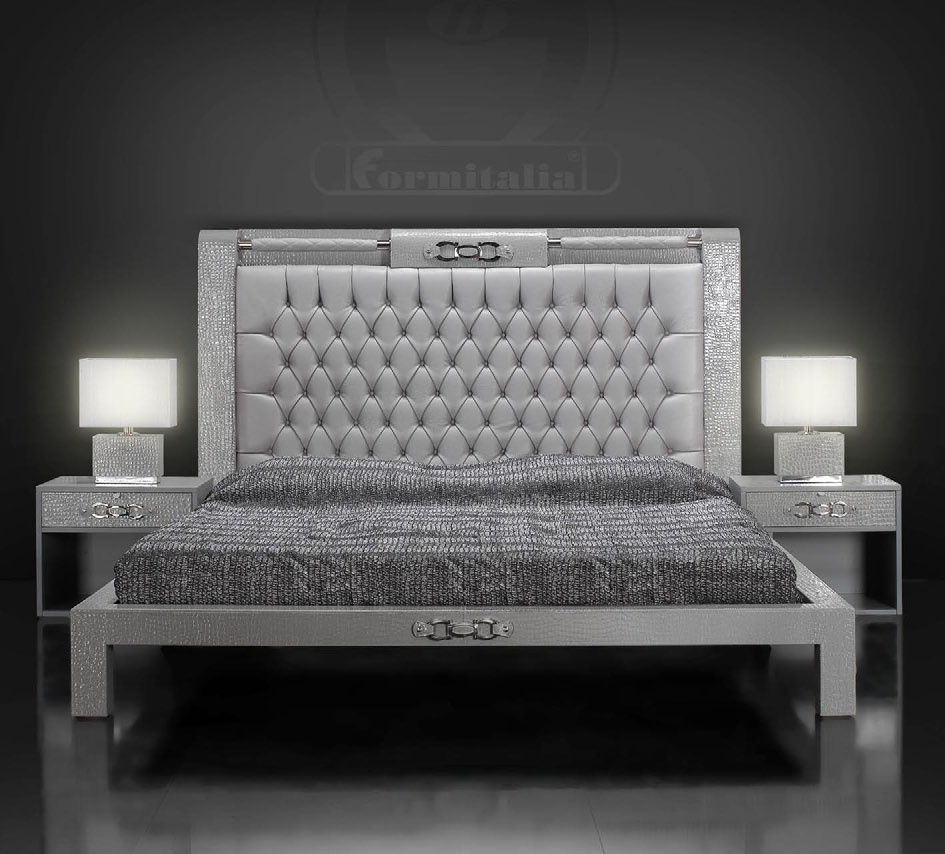 Ribot has a double bed with high headboard from the Italian manufacturer Formitalia. Model of the collection Boutique. The frame is made of natural wood, upholstery - leather, ornament is a decorative stitch Capito and metal decorative elements made of brass. Offers a wide range of colors.