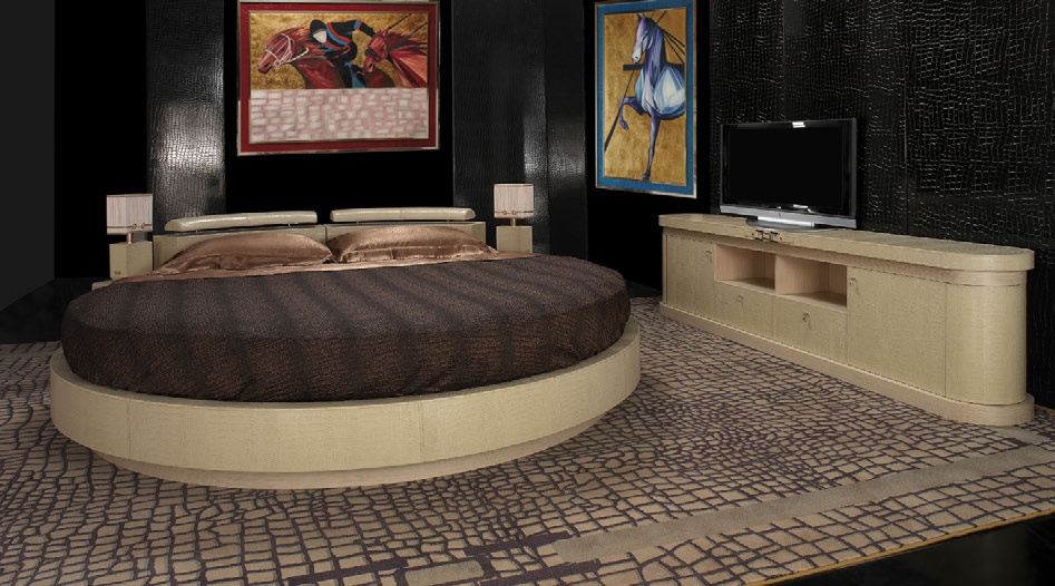 Round bed Sleeping A Round from the Italian manufacturer Formitalia. Model of the collection Boutique. The frame is made of wood, upholstered in crocodile leather. Offers a wide range of colors.