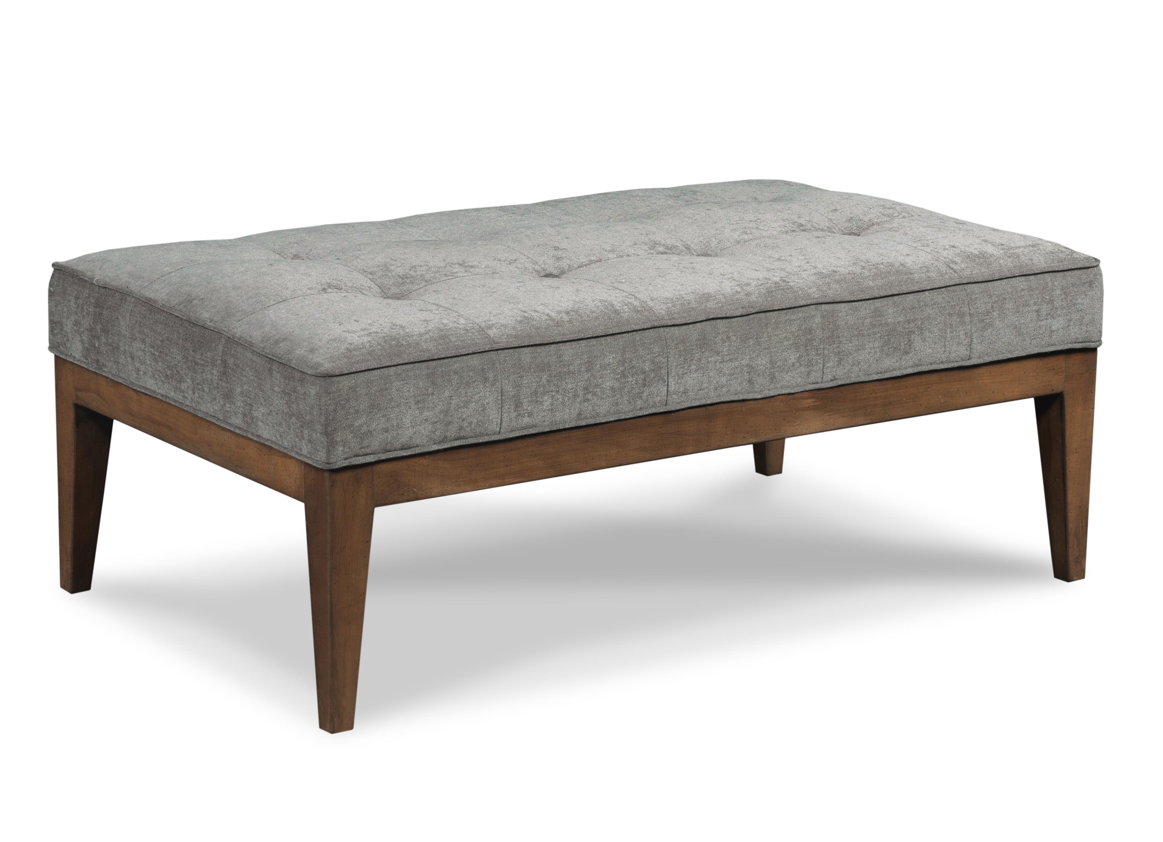 Paquin pouf with wooden frame from an American manufacturer Bradington-Young-style minimalism. The model of rectangular form with cushion upholstered in fabric with a filler of polyurethane foam. The modern design. Colours in stock.