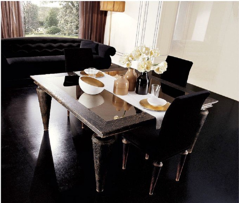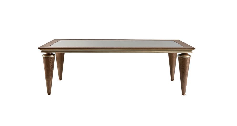 The Piccadilly table from the Italian manufacturer EGO. Dining table, made of oak, a choice of worktops 2 shapes: square and rectangular. Worktop glossy natural wood and glass. The model is made in art Deco style. Product color brown.