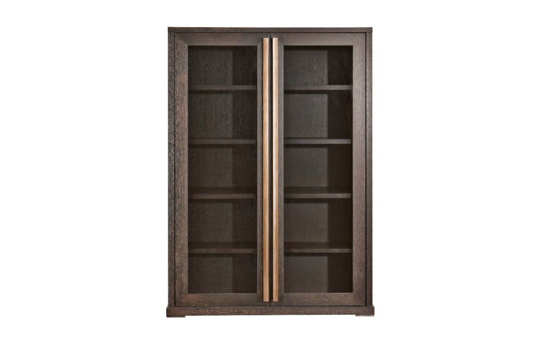 frame: oak shelves: wood doors: glass accessories : metal |