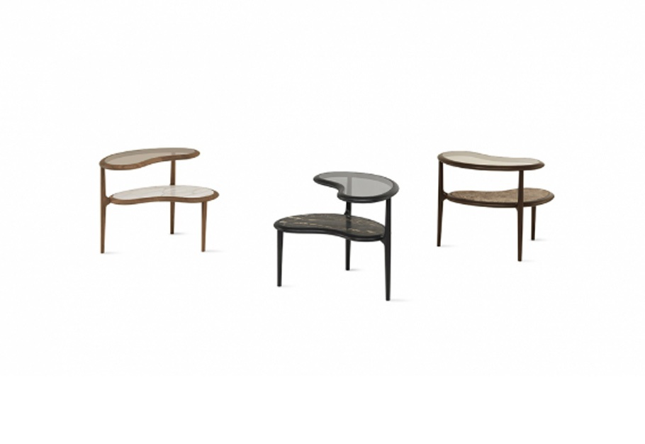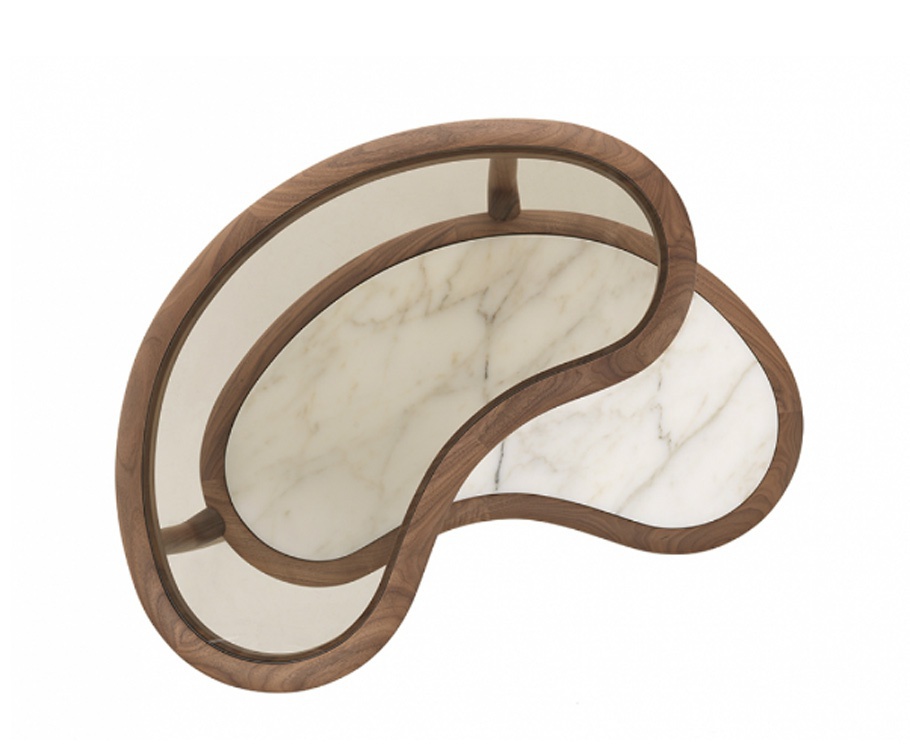 Fagiolo coffee table Italian manufacturer Ceccotti. Table on three legs with two curly tops. Frame - American walnut, top glass, marble. Design solution to complement modern interiors.