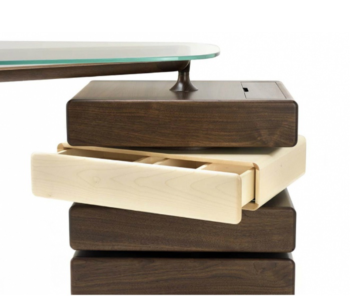 Desk Omaggio Italian manufacturer Ceccotti. The body of the table and drawers are made of wood, the table top is glass. Model is original form. Design solution for modern interior.
