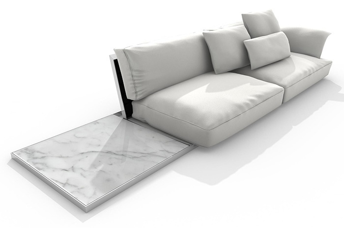 Lisiere sofa from Italian manufacturer Driade. Factory offers a double and a triple model with a visible frame made of Nickel-plated steel. The upholstery is made of leather or textile fabric from the company portfolio. The filler goose feather and polyurethane foam of different densities. Complement the design of decorative cushions. A great option for living room in modern style.