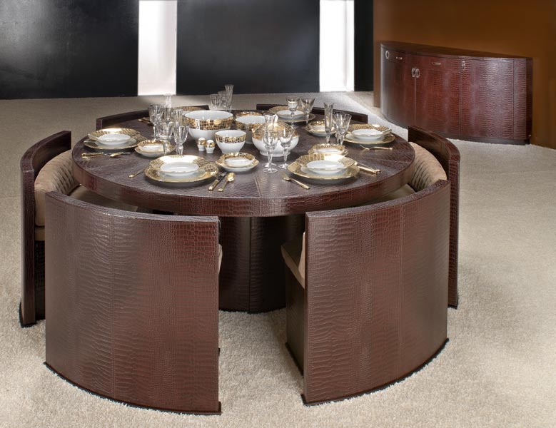 Dining table Dining A Round from the Italian manufacturer Formitalia. Model of the collection Boutique. The frame is made of real wood, finish - crocodile leather. Wide range of colors.