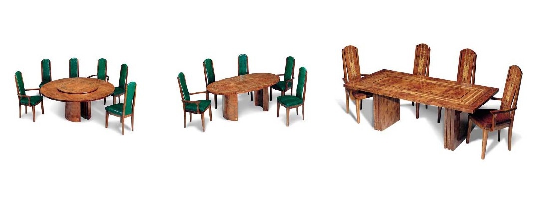 Rodeo dining table from Italian manufacturer Formitalia. Model of the collection Boutique. The frame is made of real wood, finish - crocodile leather/varnish. Wide range of colors. The manufacturer offers a choice model with a round top, oval or rectangular.
