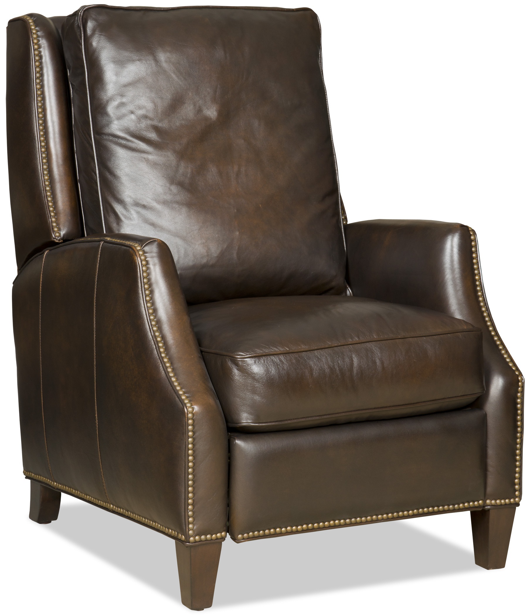 A chair with a high back Recliner Chair from American producer Bradington-Young. The frame is made of wood and metal. Upholstery - leather. Backrest and seat made of polyurethane and goose down. Available with manual or electronic control. The model has a recliner mechanism that allows you to take a comfortable position and fitted with footrests.
