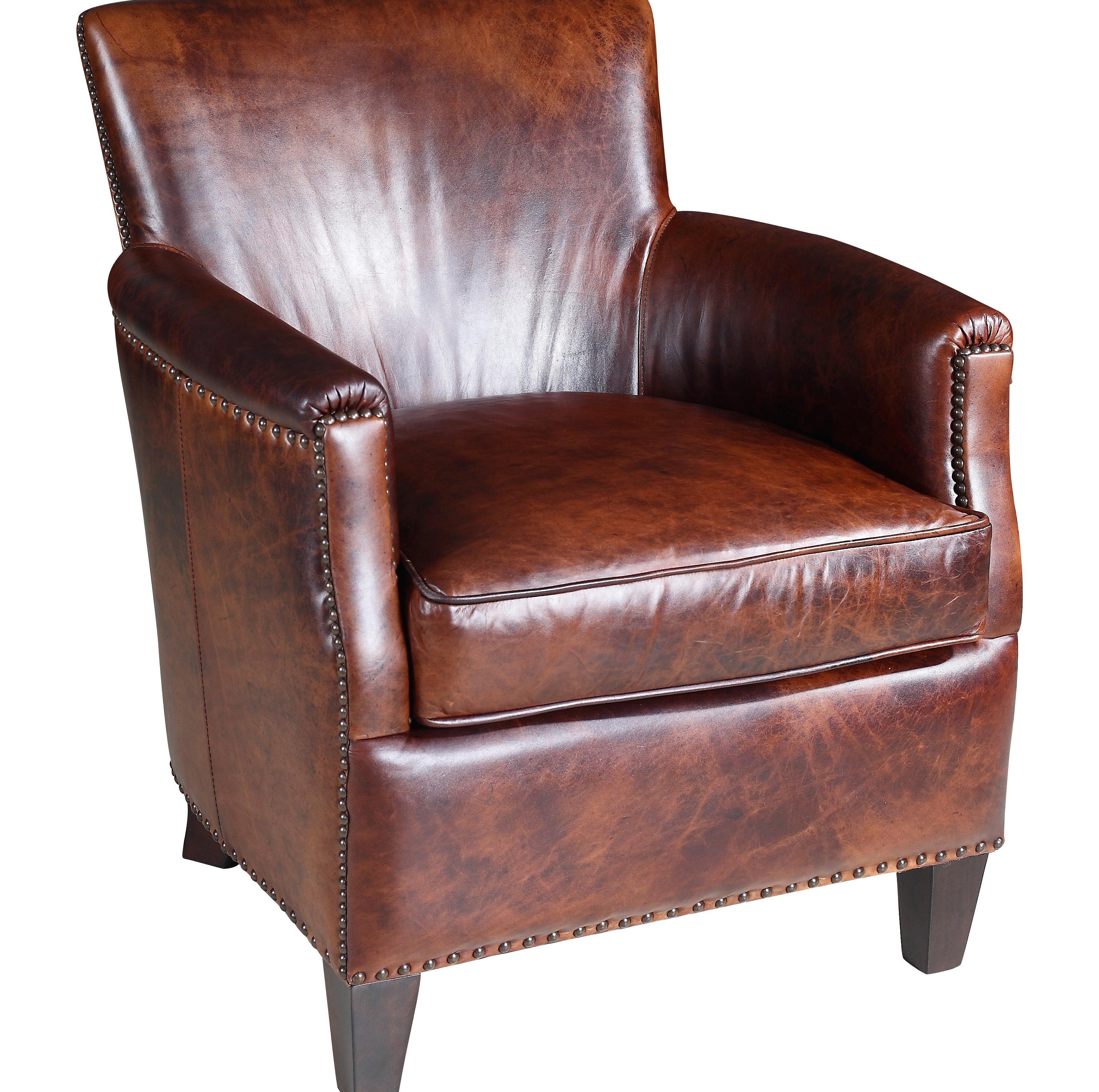 Armchair Club Chair from the American manufacturer, Seven Seas Seating. Model with leather upholstery. The frame and legs are made of wood. The filler is polyurethane foam with different densities. Decor are furniture cloves in perimetry and armrests. The modern design. Colours in stock.