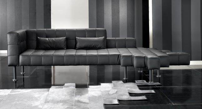 Puzzle couch from the Italian manufacturer Formitalia. The model is in modern style, the collection Boutique. Metal frame, upholstered in leather from the company portfolio. Colours in stock.