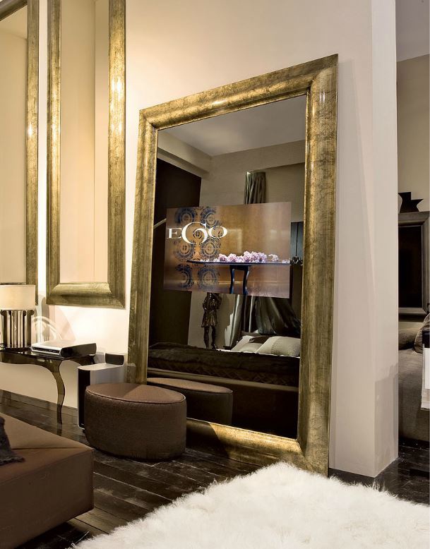 Wall mirror Babilonia from the Italian manufacturer EGO. The frame is square shape, made of wood. Frame in natural wood color, lacquer of the company's product range, in gold or silver foil, with aging effect and without. The classic form presents with a modern twist in an art Deco style.