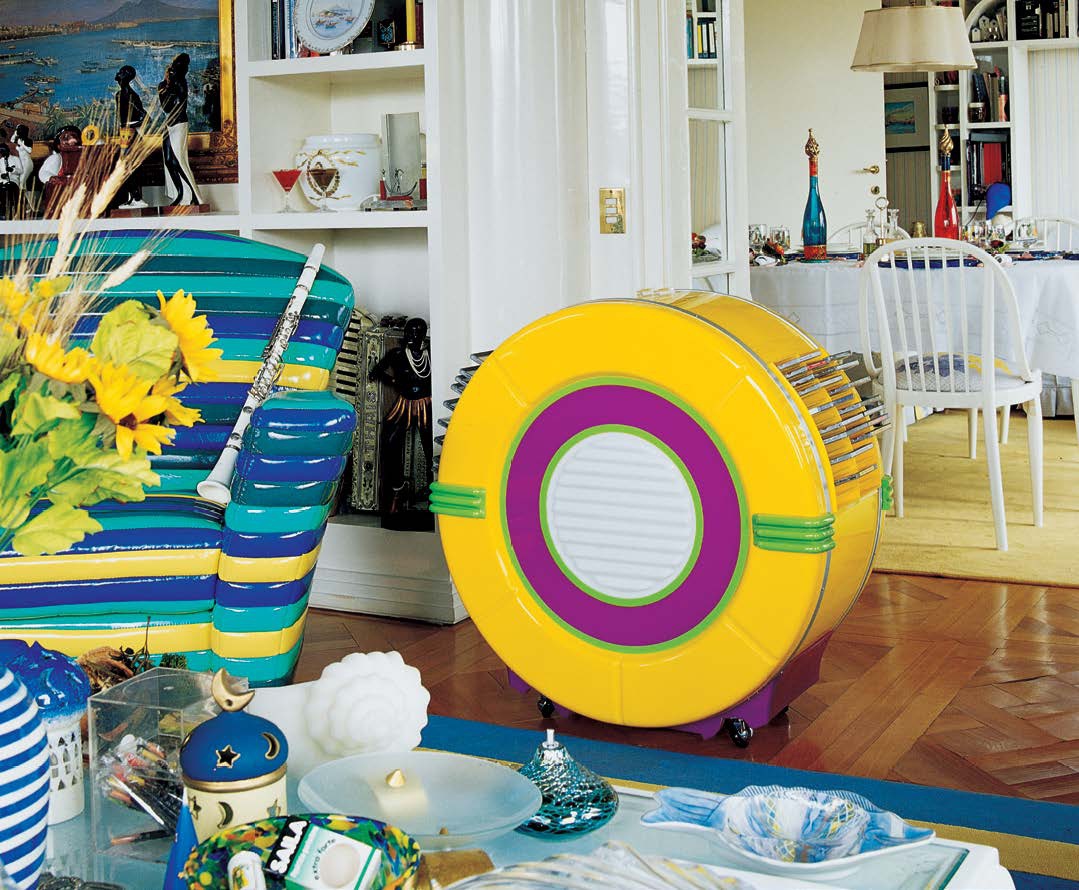 Rack for CD from the Italian manufacturer Formitalia. Model of the collection Miami Swing. The frame is made from chromed metal. Bright leather upholstery. Offers a wide range of colors.