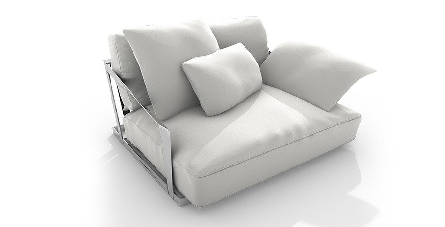 Lisiere chair from the Italian manufacturer Driade. Model with visible skeleton of Nickel-plated steel. The upholstery is made of leather or textile fabric from the company portfolio. The filler goose feather and polyurethane foam of different densities. Modern design decorative pillows complement. The model perfectly fit into the interior of a modern living room.