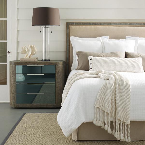 The double bed is A Clean Slate from the American manufacturer Caracole. Factory offers a double model with a high headboard with frame from wood. Upholstery made of fabric or leather from the company portfolio. As the filler, polyurethane foam of different densities. The model is in modern style.